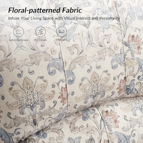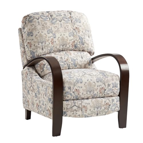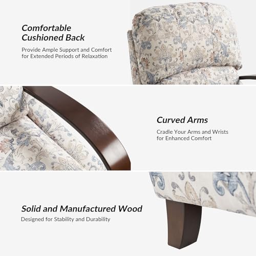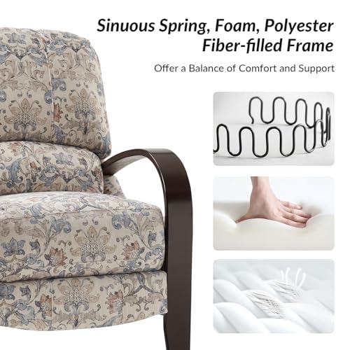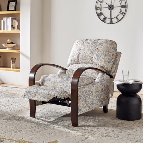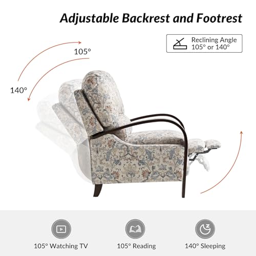 HULALA HOME Floral Manual Recliner, Modern Pushback Recliner Chair Upholstered Printed Fabric Wingback Chair for Living Room Bedroom,Red