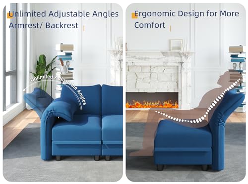 Mid-Century Recliner Chair, Modern Button Tufted Wingback Push Back Recliner Chair with Armrest and Wood Legs, Fabric Accent Recliner Single Reclining Sofa for Bedroom Living Room (Navy Blue)