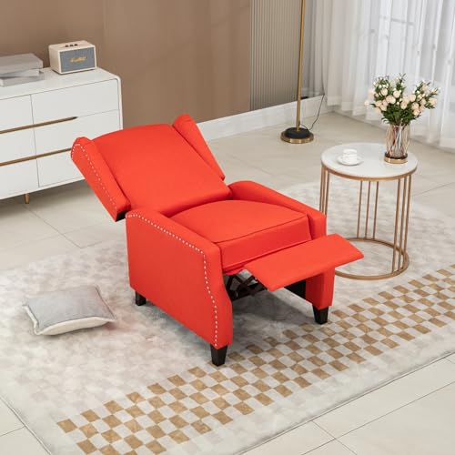 Adjustable Wingback Recliner Chair, Push Back Recliner Sofa Chair with Adjustable Back and Footrest, Stylish Small Reclining Armchair for Living Room, Reading Room, Red