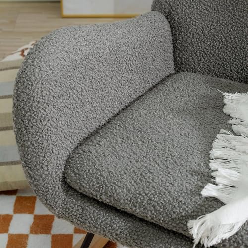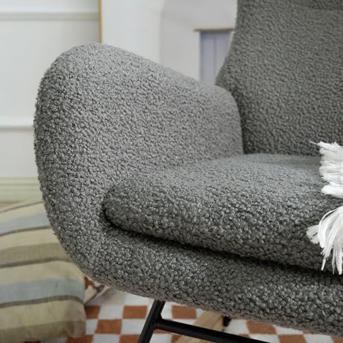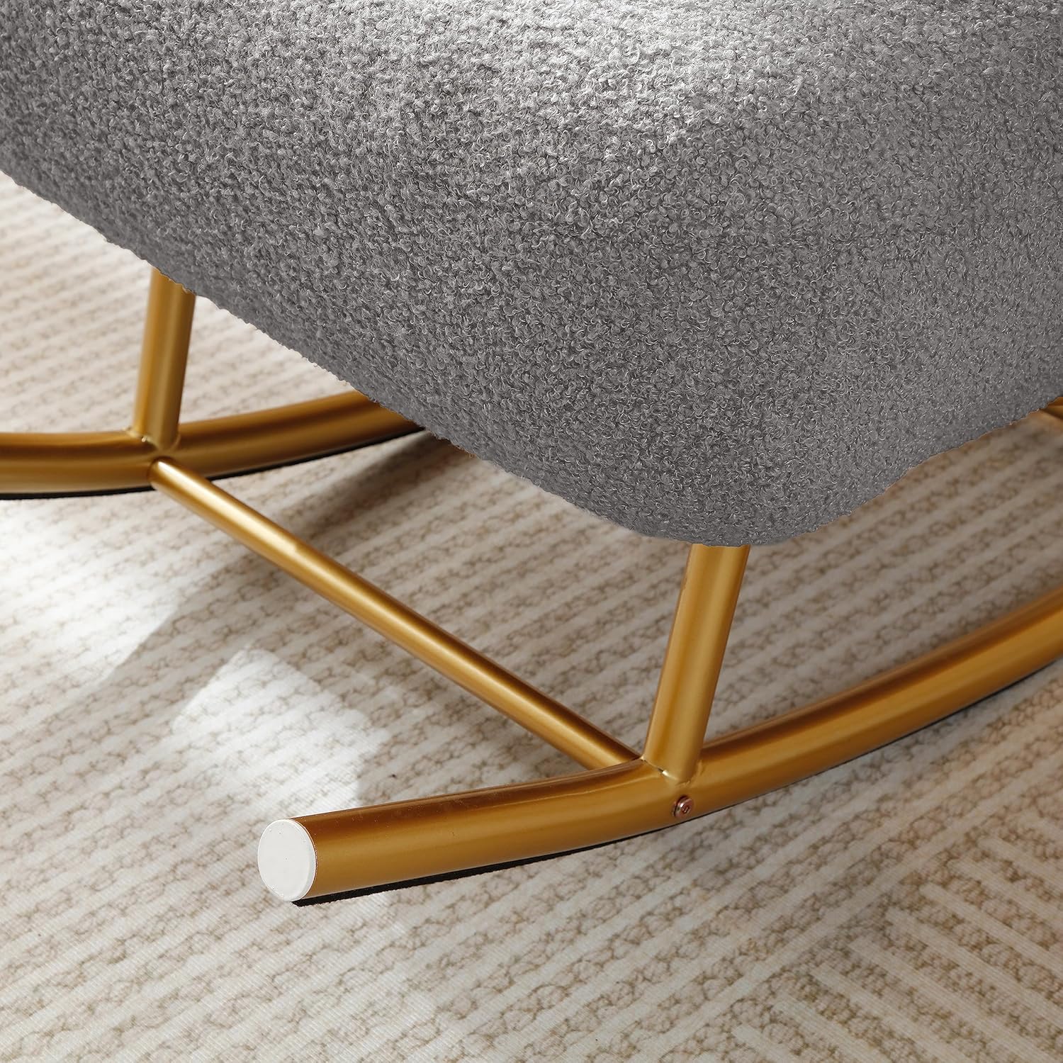Modern Sherpa Fabric Nursery Rocking Chair,Accent Upholstered Rocker Glider Chair for Baby and Kids,Comfy Armchair with Gold Metal Frame,Leisure Sofa Chair for Nursery/Bedroom/Living Room/Office,Grey