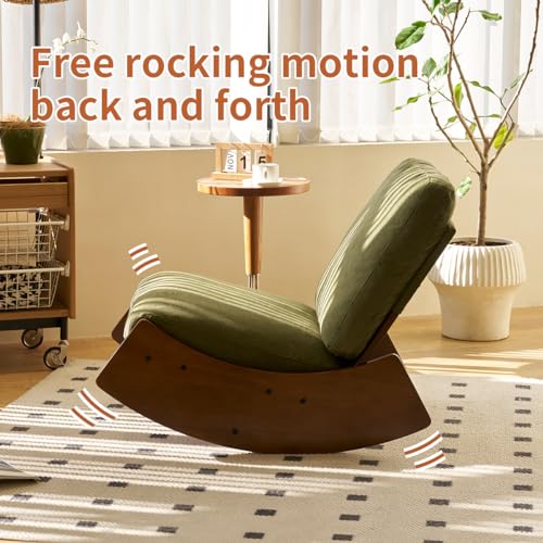 Teddy Fabric Rocking Chair, Upholstered Rocker Armchair with High Backrest, Modern Rocking Accent Chair for Bedroom Living Room (Green)