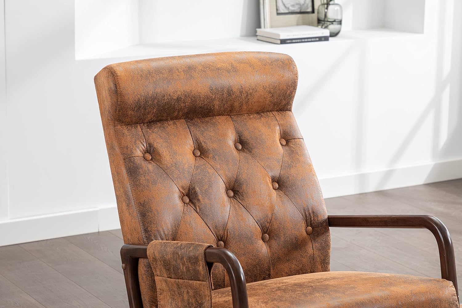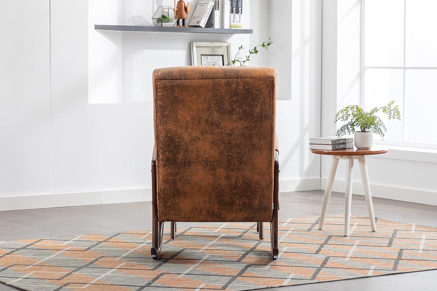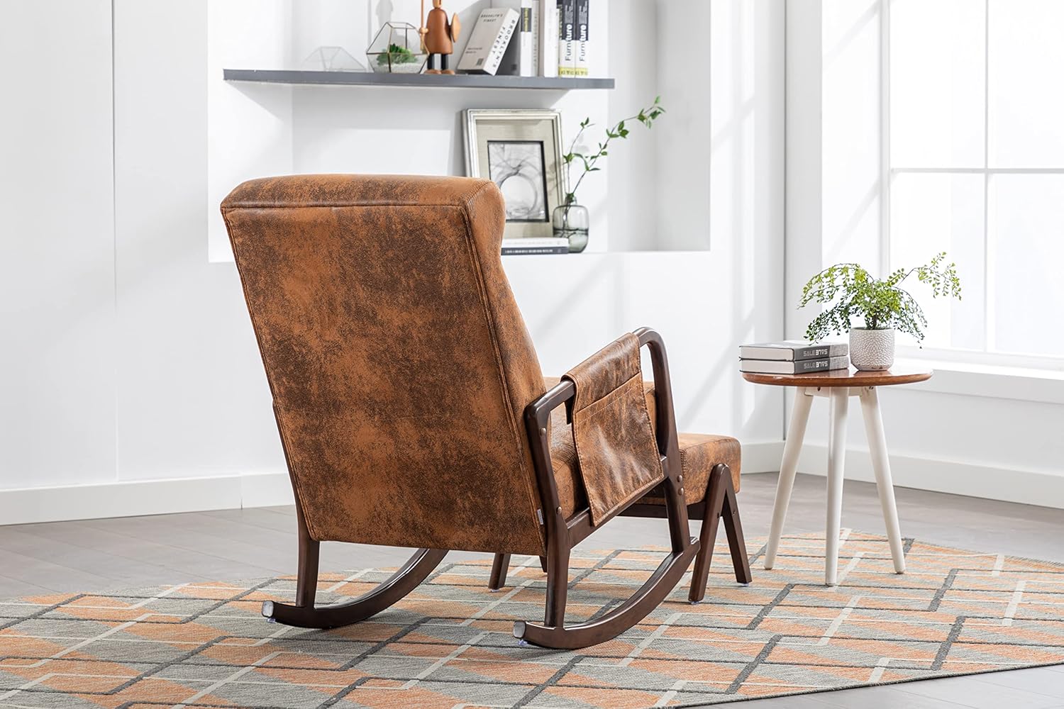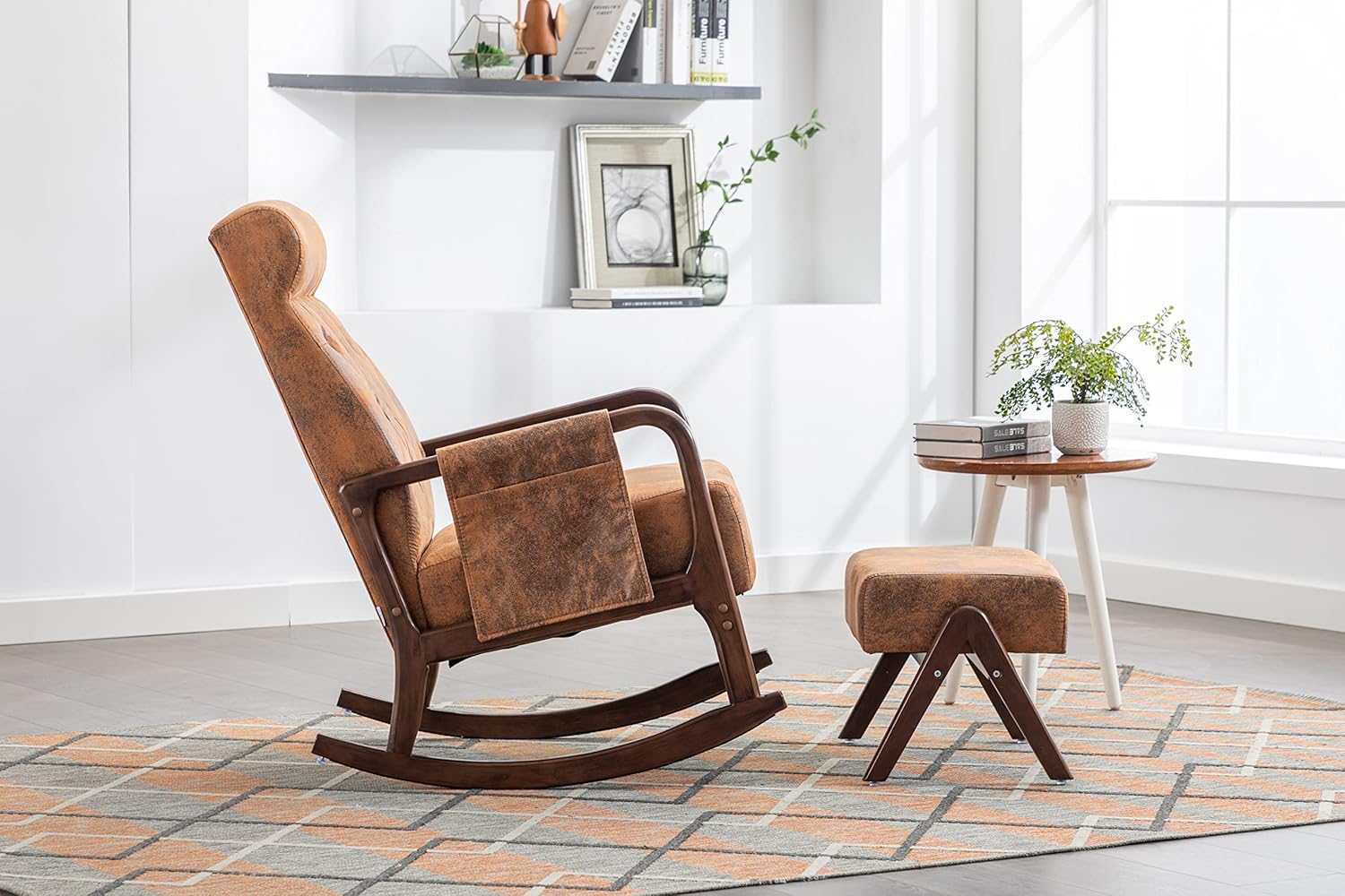 Rocking Chair with Ottoman, Mid-Century Modern Upholstered Fabric Rocking Armchair, Rocking Chair Nursery with Thick Padded Cushion, High Backrest Accent Glider Rocker Chair for Living Room (Coffee)