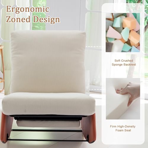 Glider Rocking Chair Upholstered Glider Chair Solid Wood Frame Rocker Accent Chair for Reading Bedroom Living Room Nursery Indoor, White