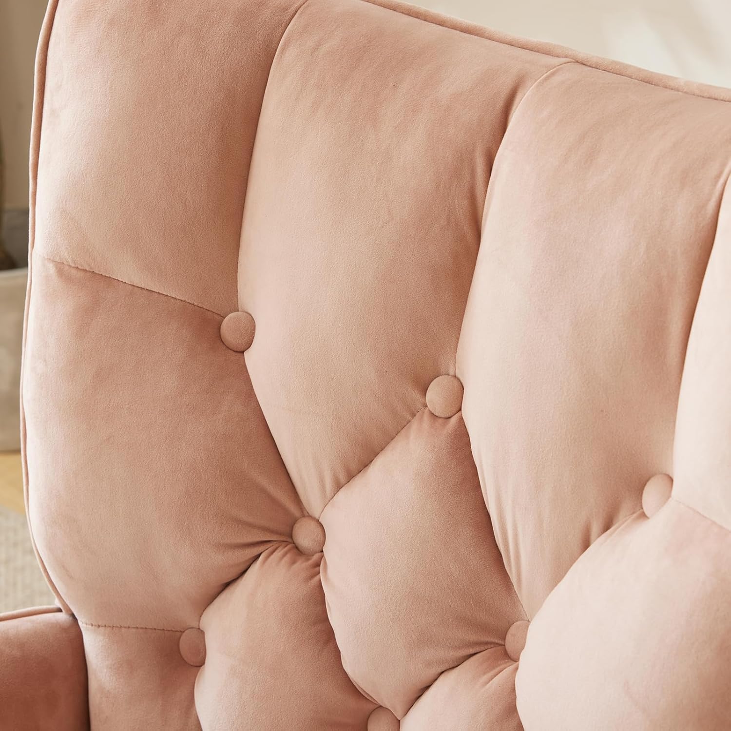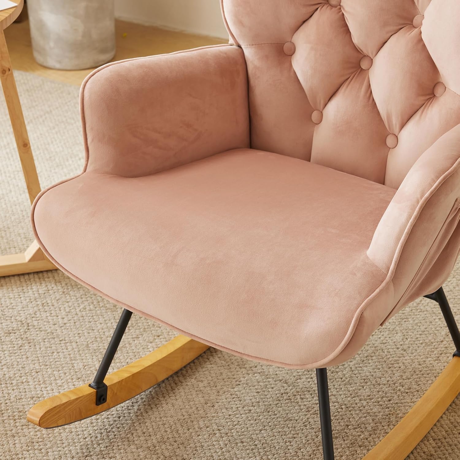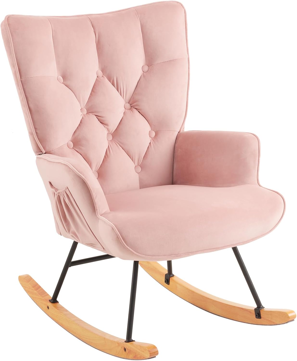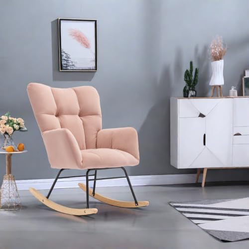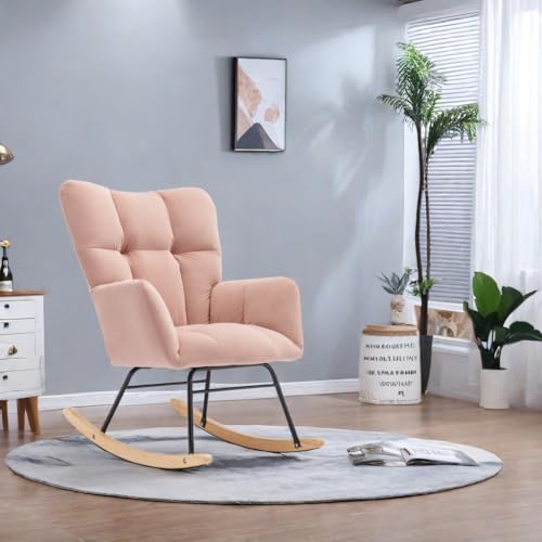 Upholstered Pink Nursery Rocking Chair Glider Recliner - Stylish High Backrest Accent Chair for Living Room & Bedroom