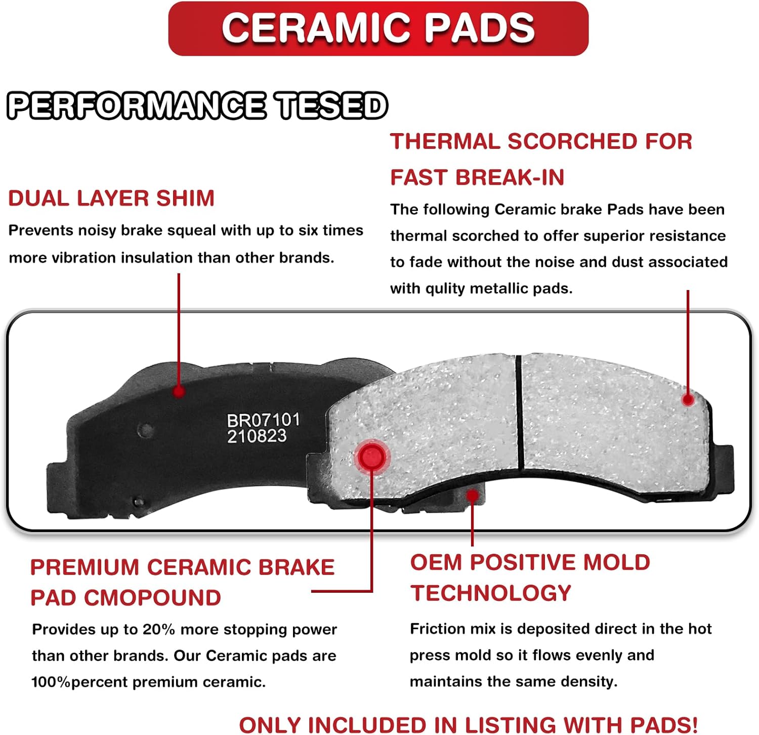 SCITOO Front 12.64" Rear 11.93" Brake Pads and Rotors Kits Fit For Chevrolet Equinox 2010-2017,For GMC Terrain 2010-2017