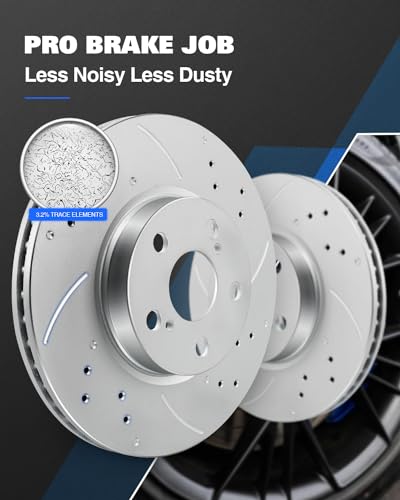 Front and Rear Drilled Slotted Brake Rotors & Ceramic Brake Pads replacement for Chevy Equinox GMC Terrain 2010-2017