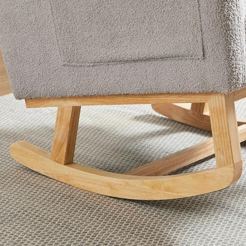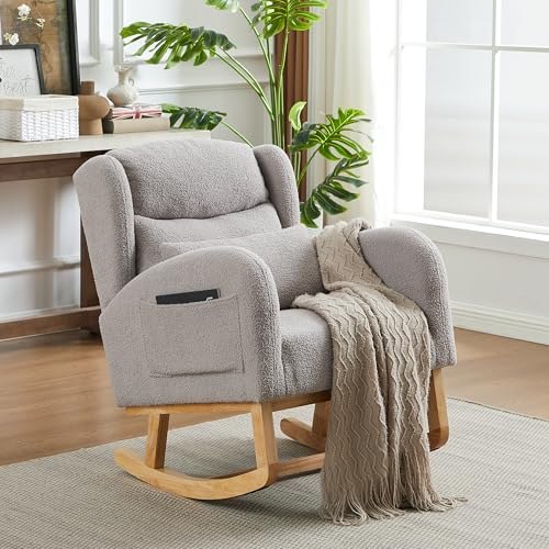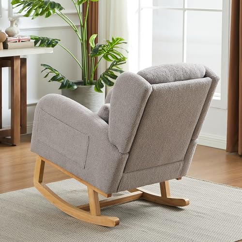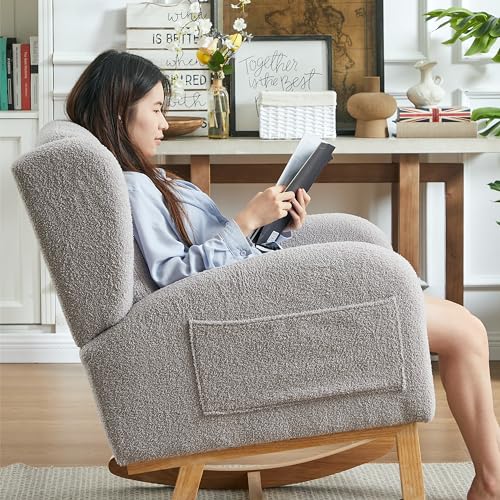Modern Accent Rocking Chair, Upholstered Nursery Glider Rocker for Baby, Comfy Armchair with Side Pocket, Living Room Lounge Arm Chair, High Backrest with Headrest Shape Design (Army Green)