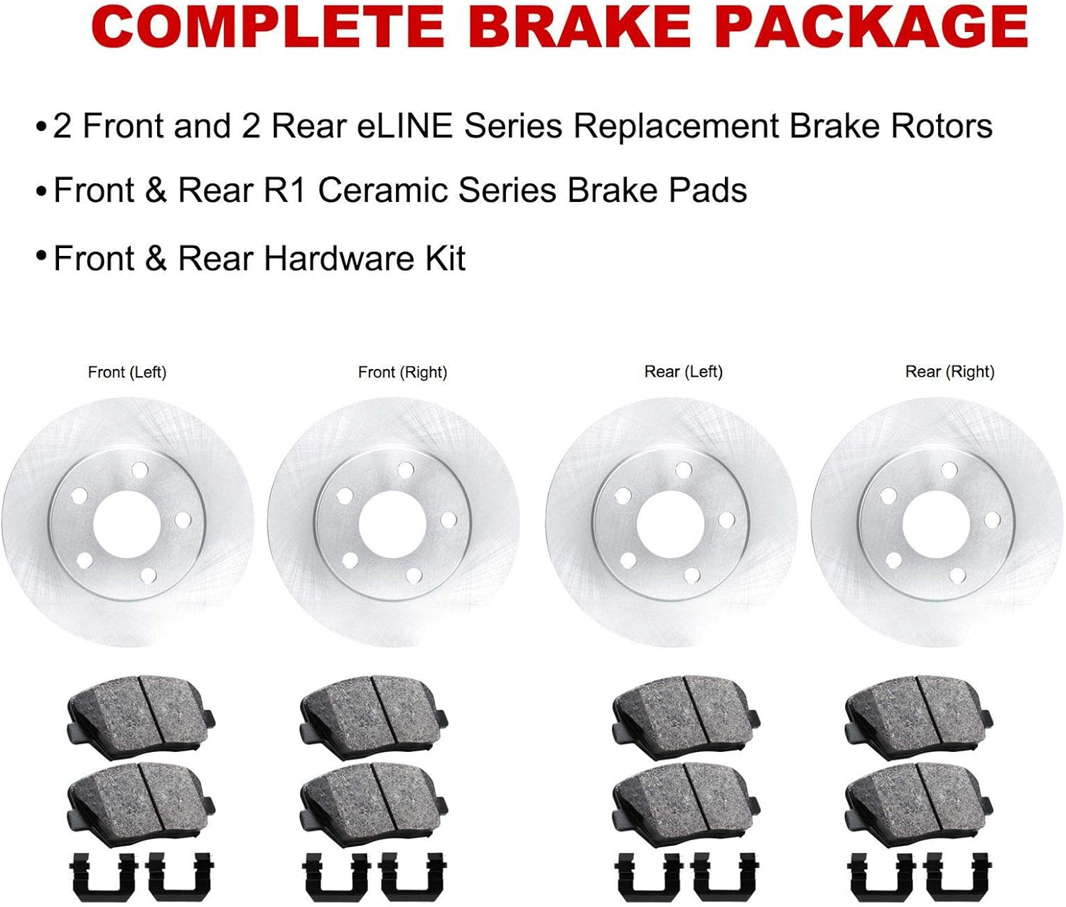 R1 Concepts Front Rear Brakes and Rotors Kit |Front Rear Brake Pads| Brake Rotors and Pads| Ceramic Brake Pads and Rotors |Hardware Kit|fits 2010-2017 Chevrolet Equinox, 2010-2017 GMC Terrain