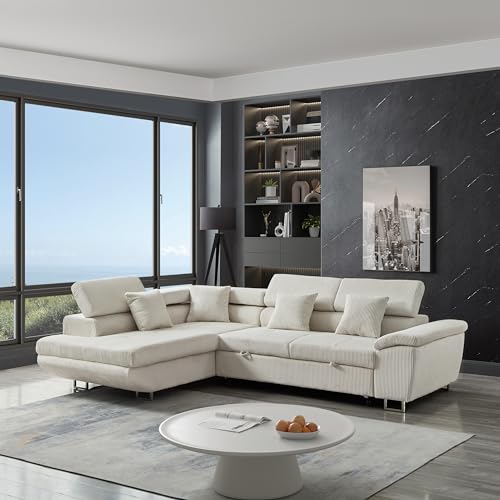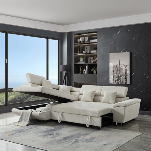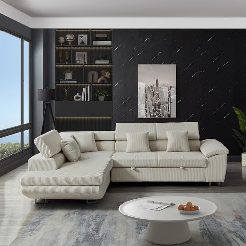 105.8" Luxury Sleeper Sofa Bed with Pull Out Couch Bed,Left-Corner Chaise Sofa with Storage Chaise Lounge,Adjustable Backrest & Plush Corduroy Velvet for Living Room (Darkgray)
