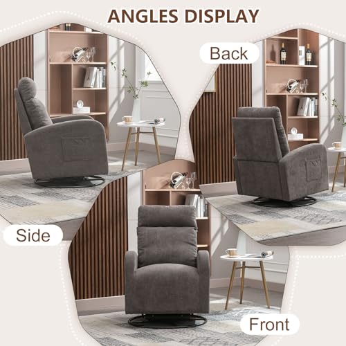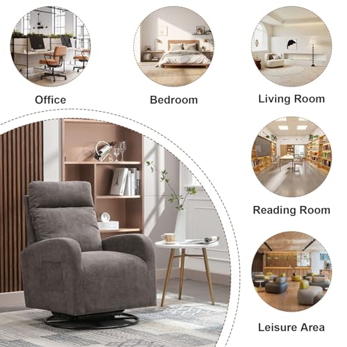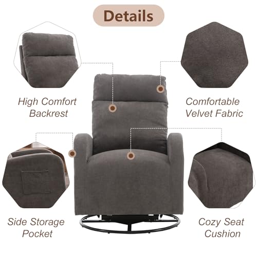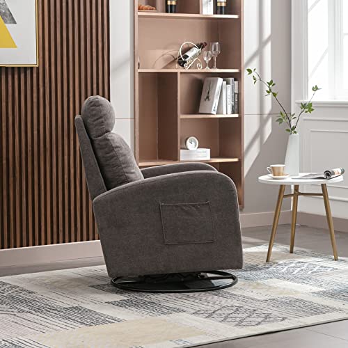 Swivel Rocking Chair,Nursery Swivel Glide Armchair Linden Fabric Upholstered Modern Rocking Chairs with High Backrest for Nursery, Bedroom, Living Room(Dark Gray