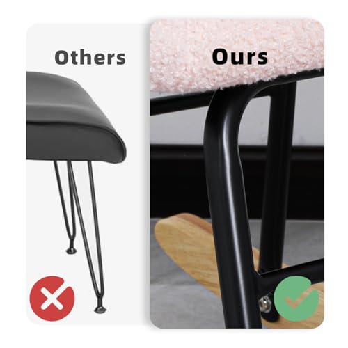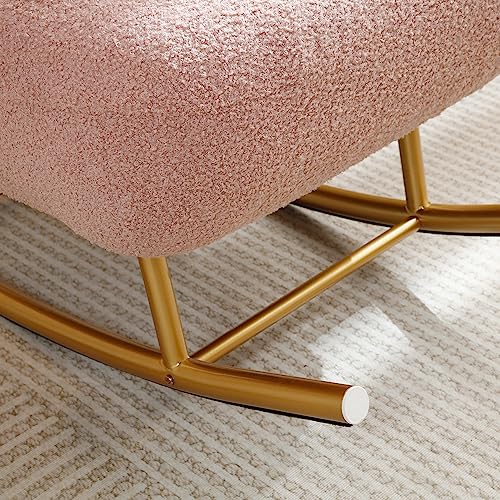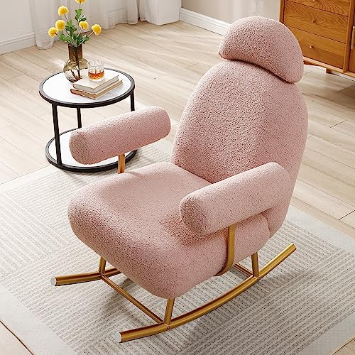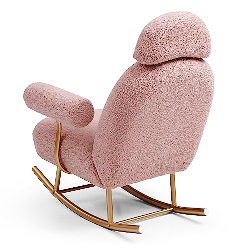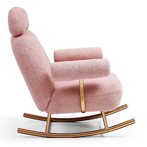 Nursery Rocking Chair Teddy Upholstered Glider Rocker Rocking Accent Chair Padded Seat with High Backrest Armchair Comfy Side Chair for Living Room Bedroom Offices (Pink)
