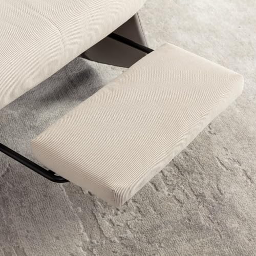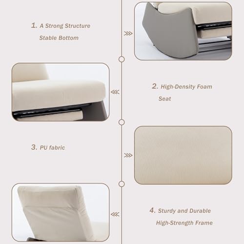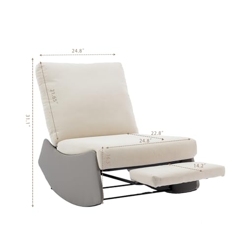 Nursery Rocking Chair with Ottoman, Modern Upholstered Fabric Rocking Armchair with Thick Padded Cushion, High Backrest Accent Glider Rocker Chair for Living Room Bedroom (Beige)