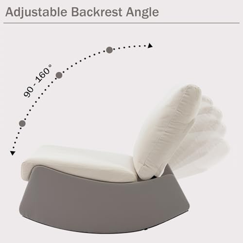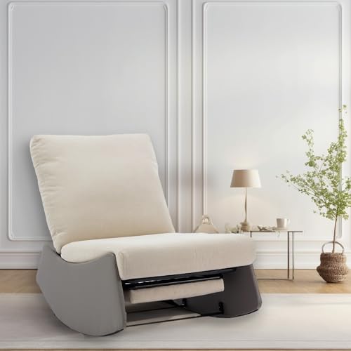 Rocking Chair with Foot Rest, Upholstered Lounge Chair Indoor and Outdoor Patio Rocking Chair Gray Adjustable Backrest Nursery Recliner for Relaxing Resting Living Room Bedroom Office Garden