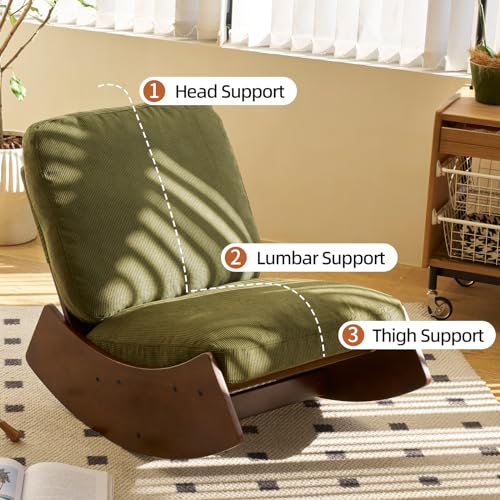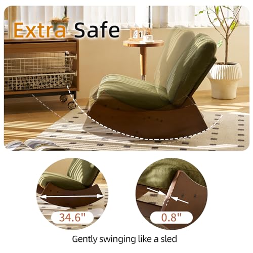 Nursery Rocking Chair Corduroy Fabric Upholstered Tall Back Glider Rocker Rocking Accent Chair Comfy Single Sofa Side Chair for Living Room Bedroom Hotel, Bedroom, Baby Room (Tan)
