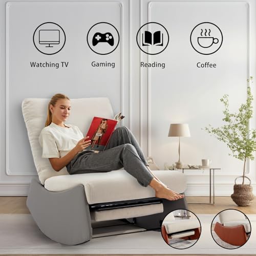 Majnesvon Modern PU Accent Rocking Chair Recliner with Footrest – Comfy Nursery Rocker, Upholstered Lounge Chair for Reading and Relaxing, Soft Padded Rocker for Living Room and Bedroom (Gray)