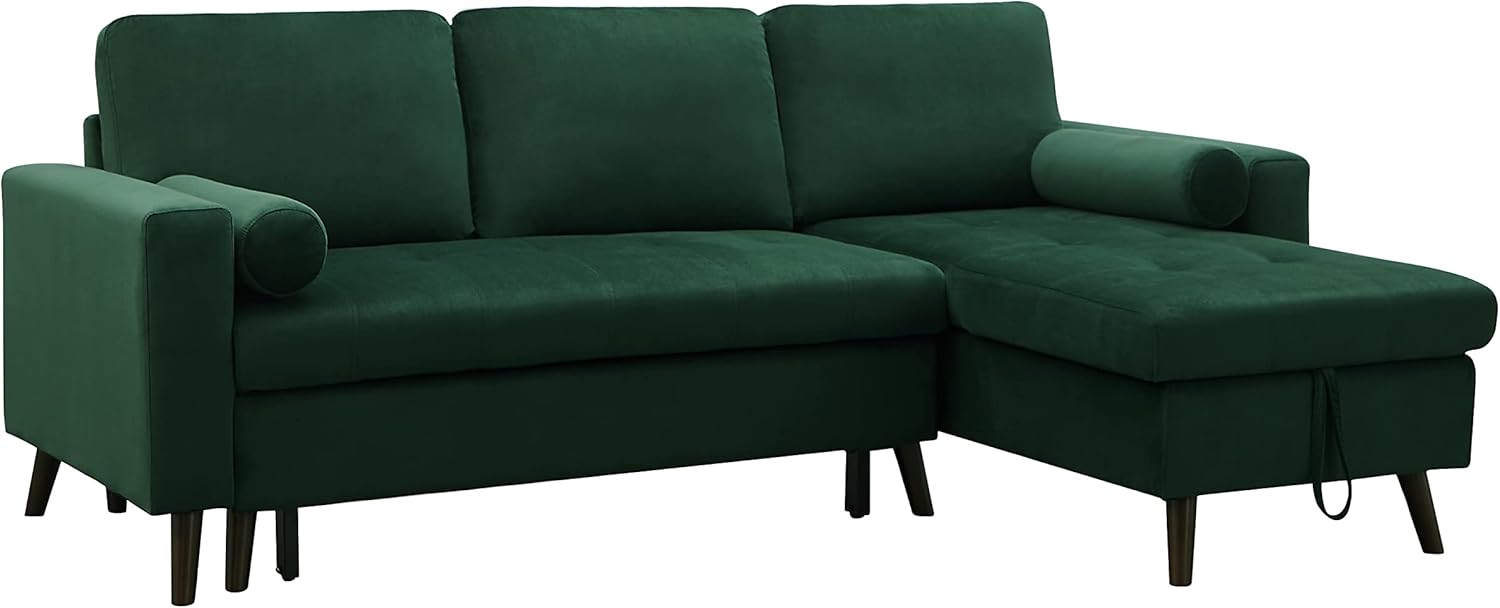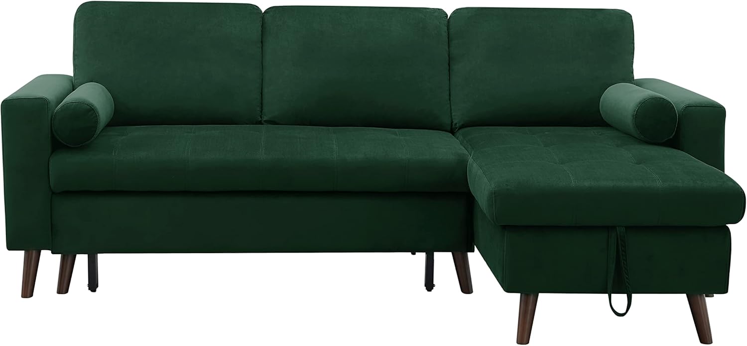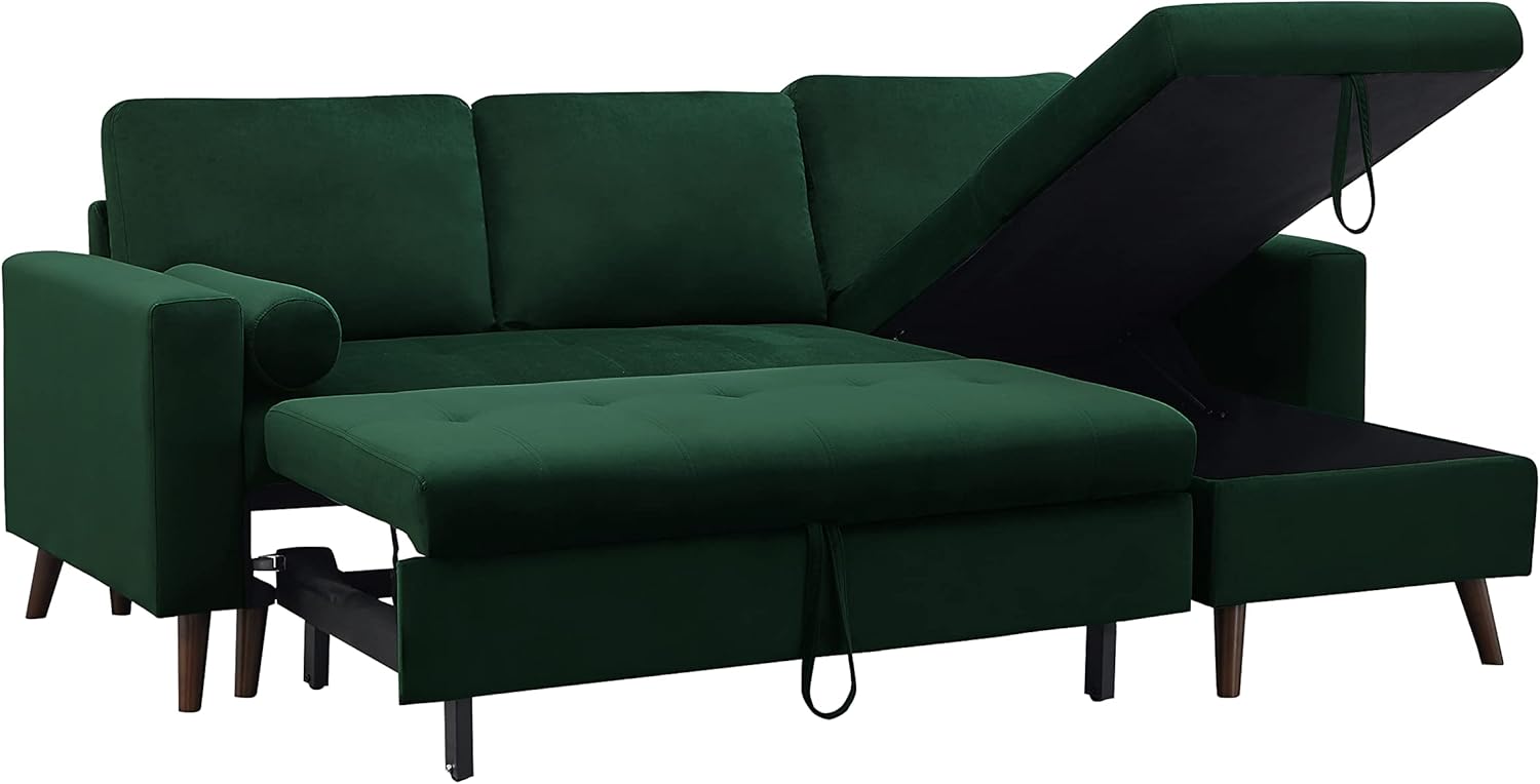 Set 88" Modern Living Room, Reversible Pull Out Sleeper Sectional Sofa Bed, Corner Daybed with Storage Left/Right Handed Chaise, Green
