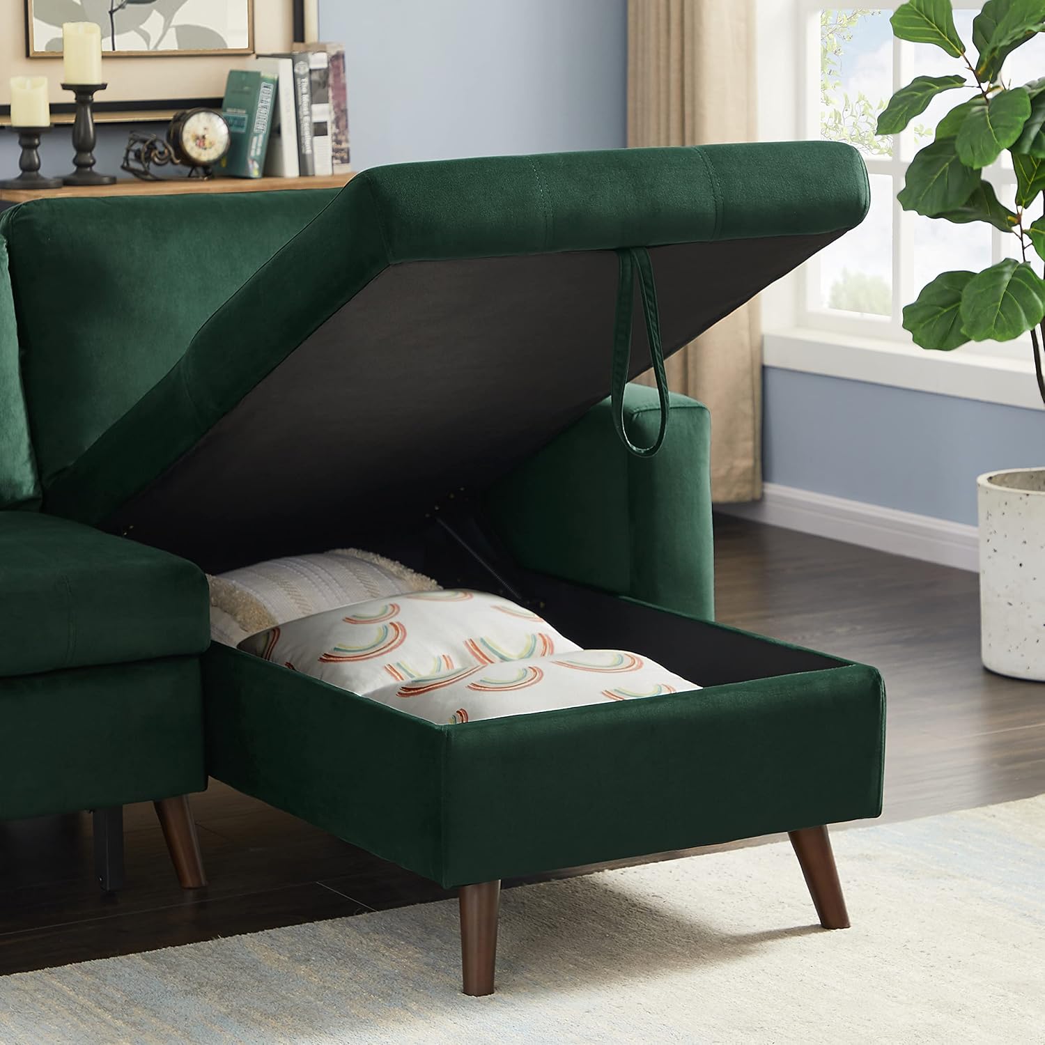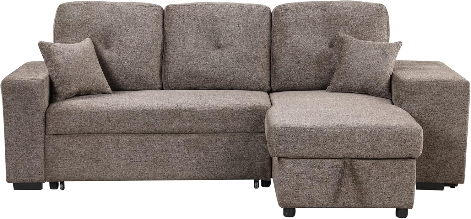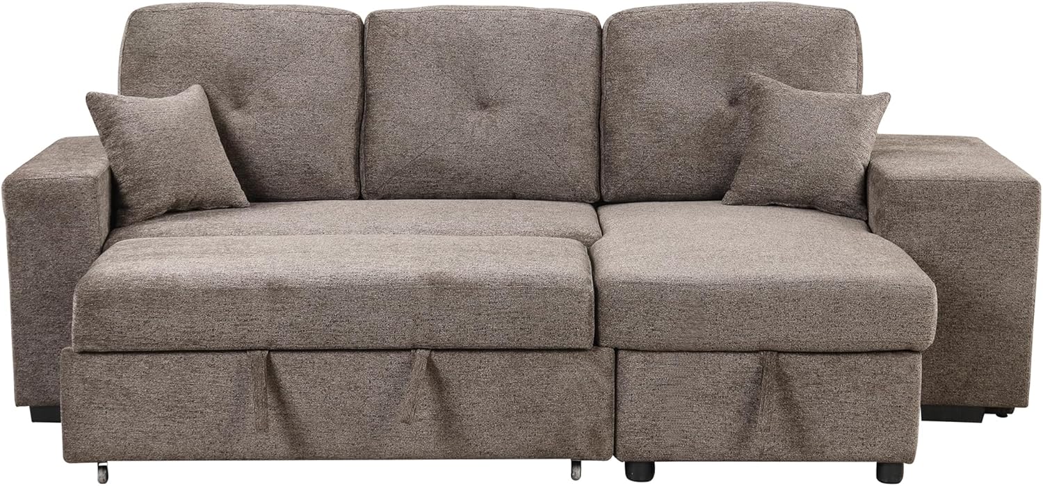 Set 88" Modern Living Room, Reversible Pull Out Sleeper Sectional Sofa Bed, Corner Daybed with Storage Left/Right Handed Chaise, Green
