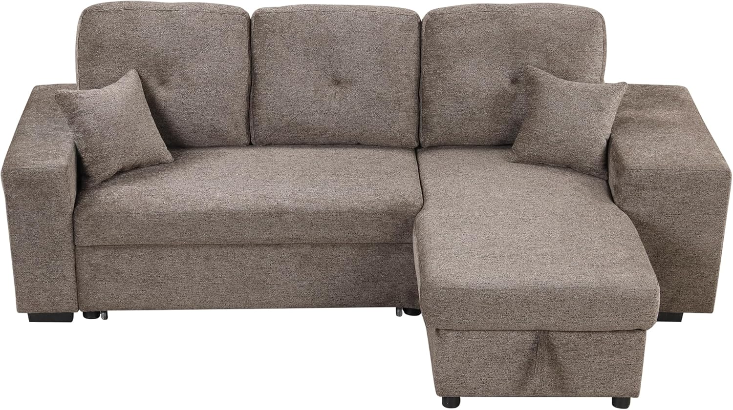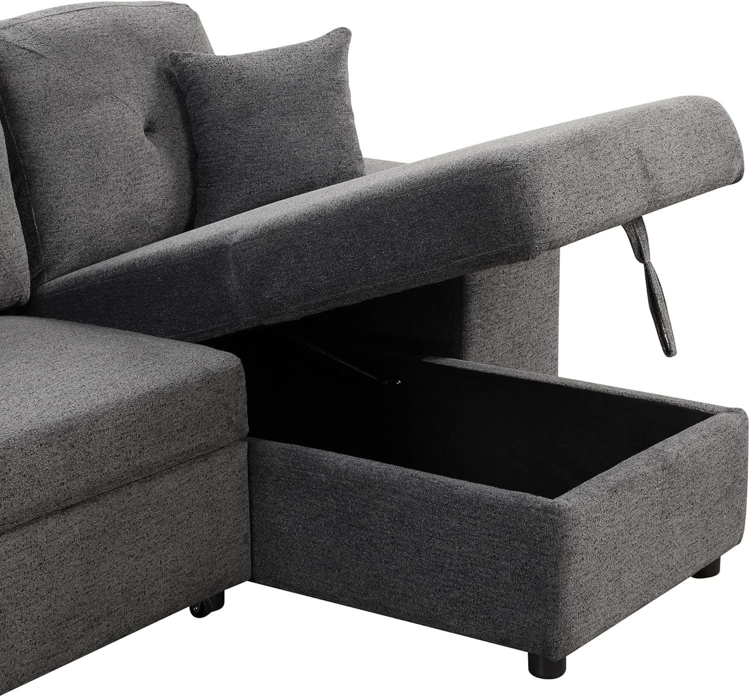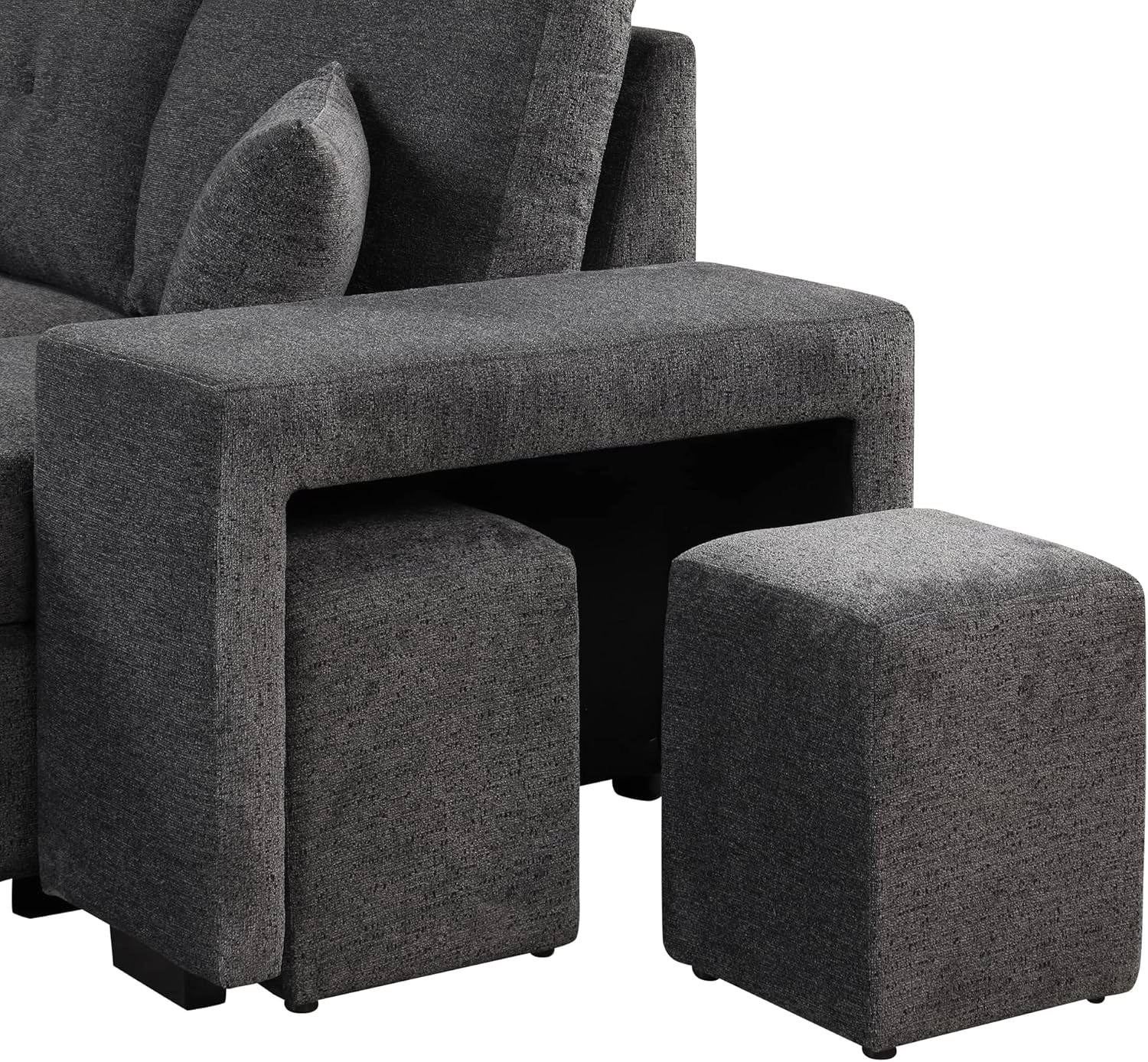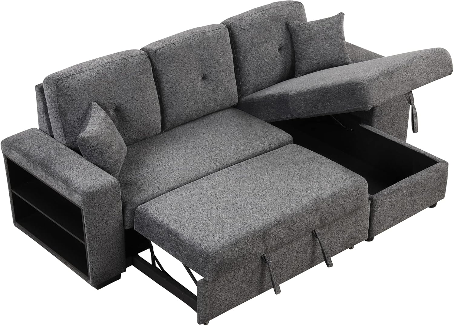 Reversible Sleeper Sectional Sofa Bed with Side Shelf and 2 Stools,Pull-Out L-Shaped Sofa Bed,Corner Sofa-Bed with Storage Chaise Left/Right Hande for Living Room,Knox Charcoal