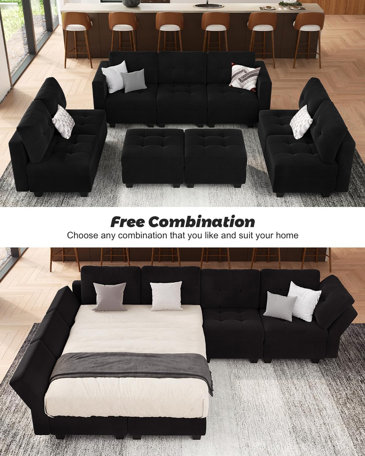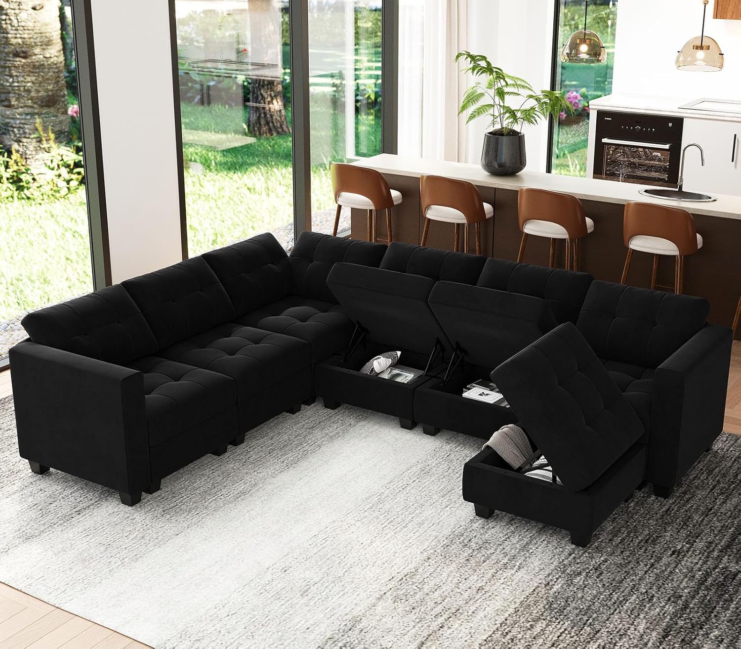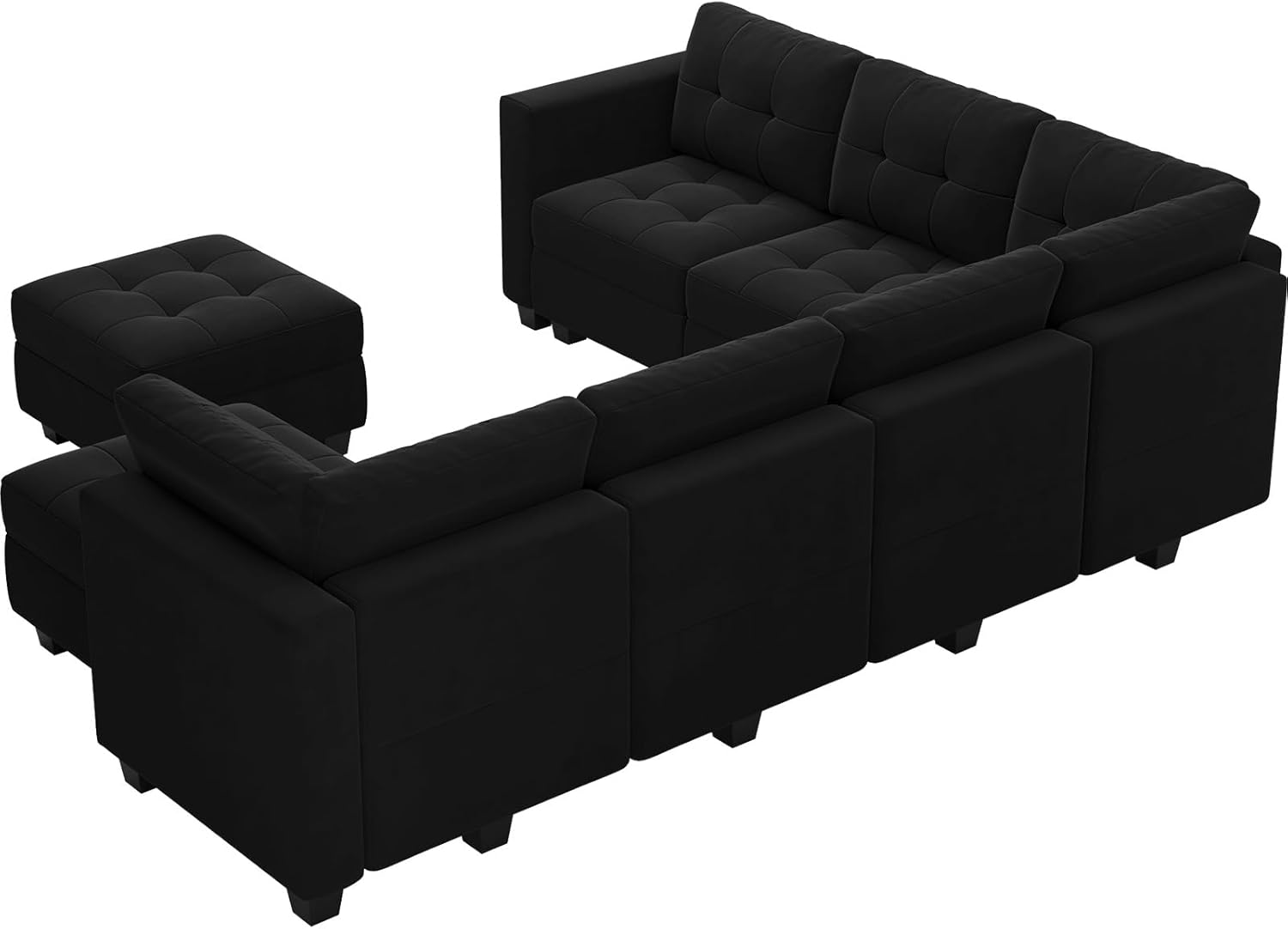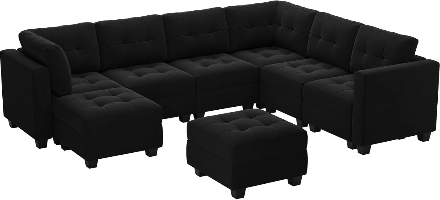 Belffin U Shaped Sectional Modular Sofa Set with Chaise, Reversible Sectional Modular Sofa Couch with Ottomans, Velvet Fabric Sectional Couch with Storage Seats,Black