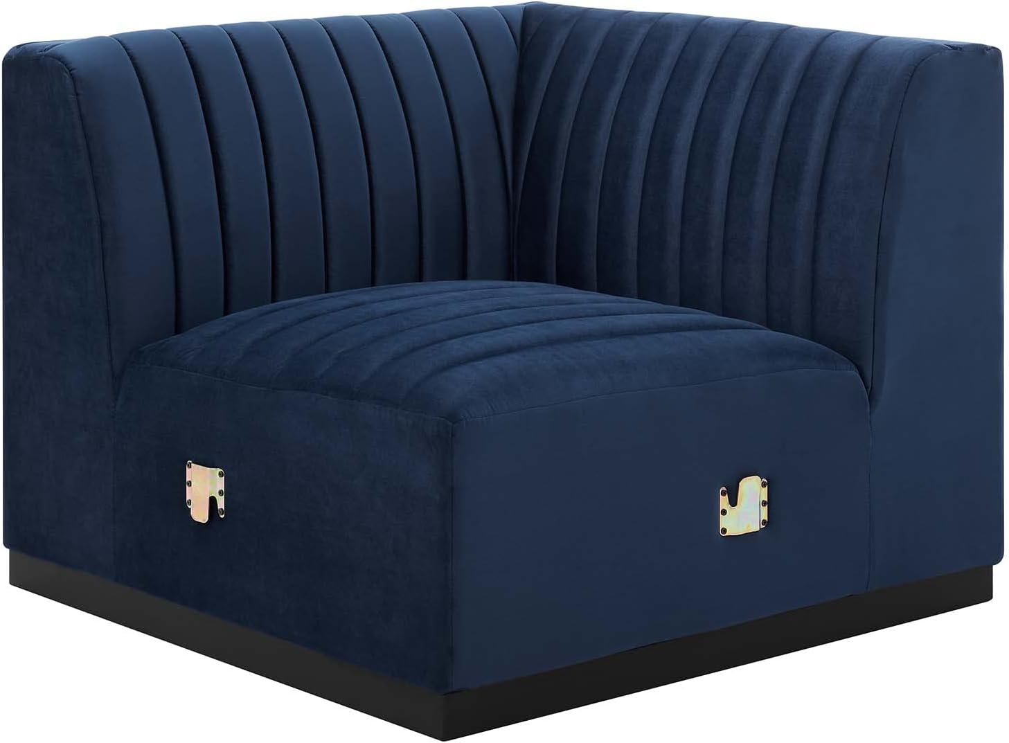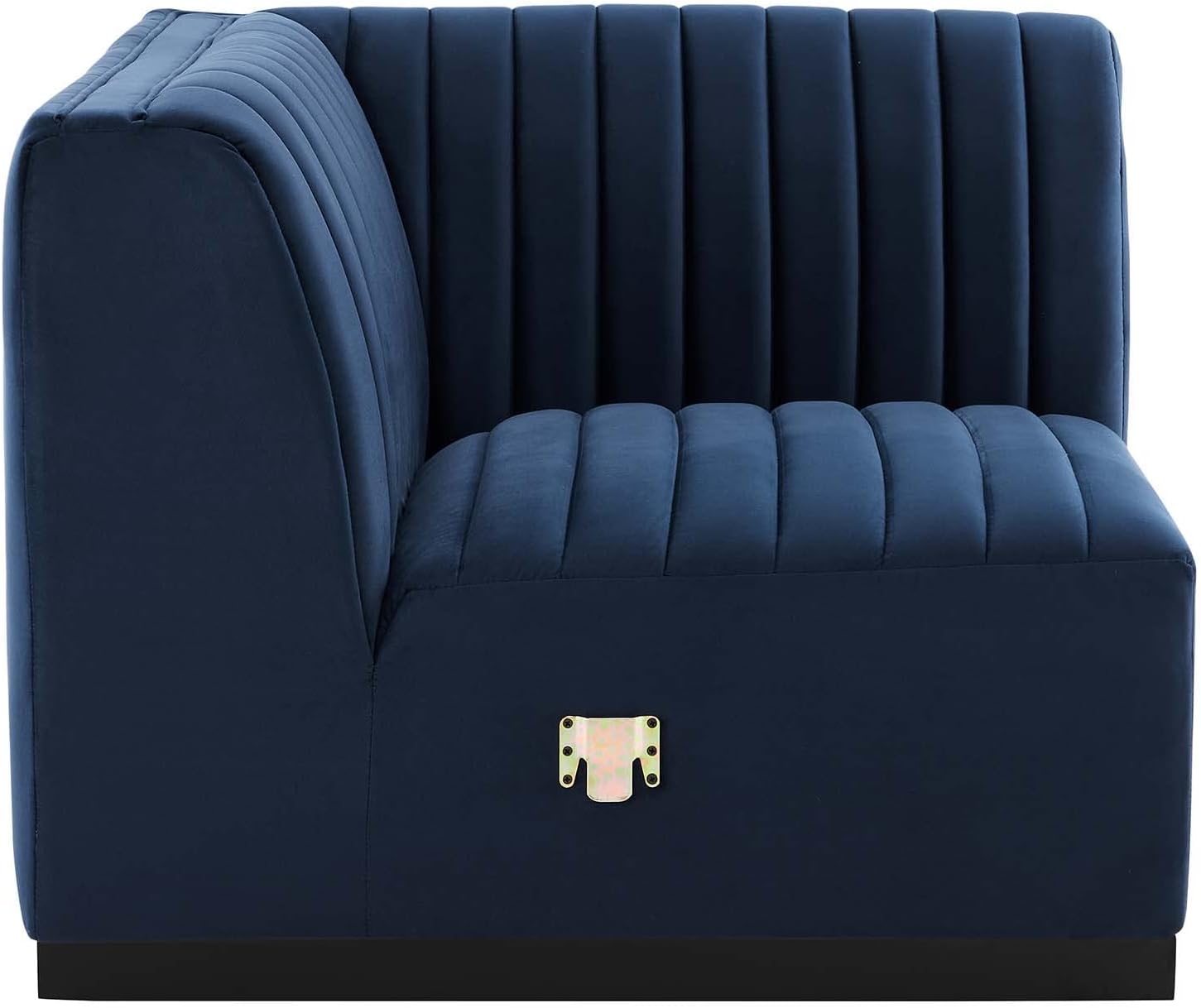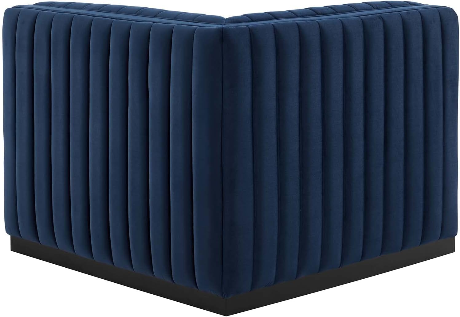 Modway Conjure Channel Tufted Upholstered Performance Velvet Sectional Sofa Left Corner Chair in Black Midnight Blue