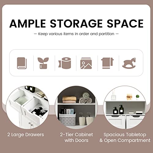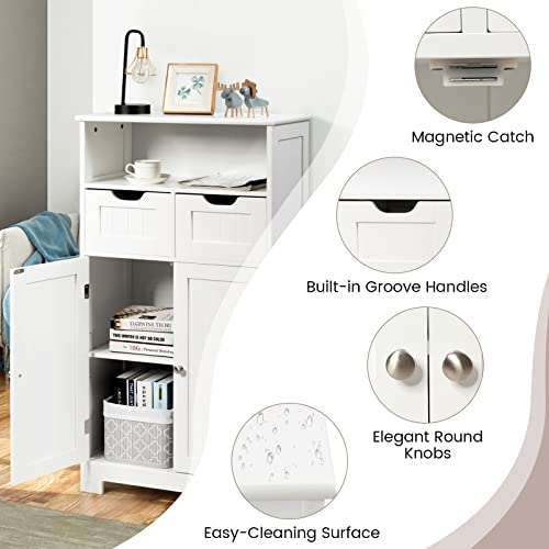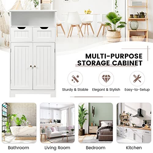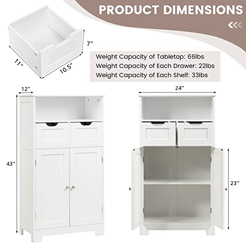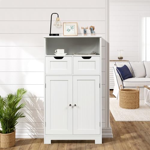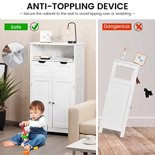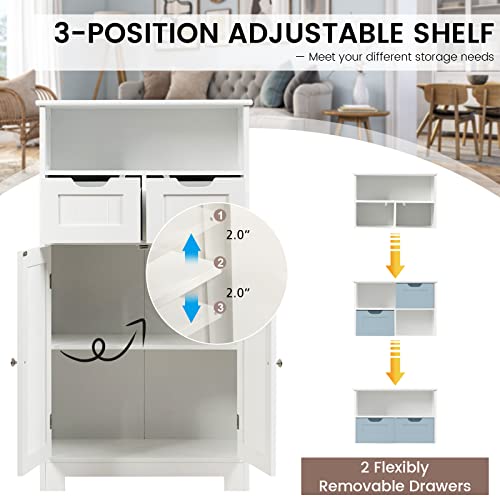Bathroom Storage Cabinet, Bathroom Floor Cabinet w/ 2 Removable Drawers, 2 Doors & Adjustable Shelf, Bathroom Cabinets Organizer for Living Room, Kitchen & Entryway (Black)