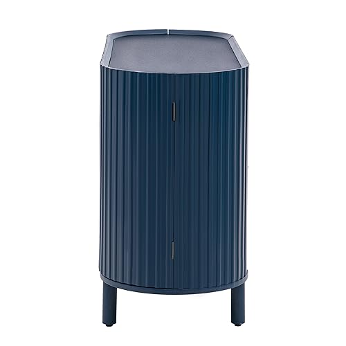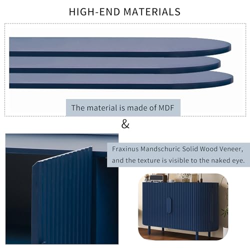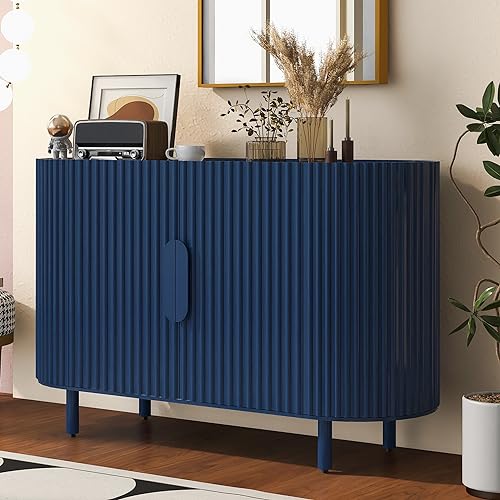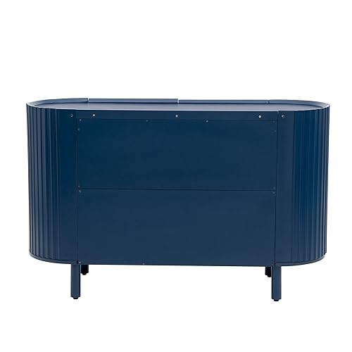 47" Light Luxury Storage Cabinet 4-Doors Sideboard with Adjustable Shelves Wavy Surface Pine Wood, 47.80", Blue
