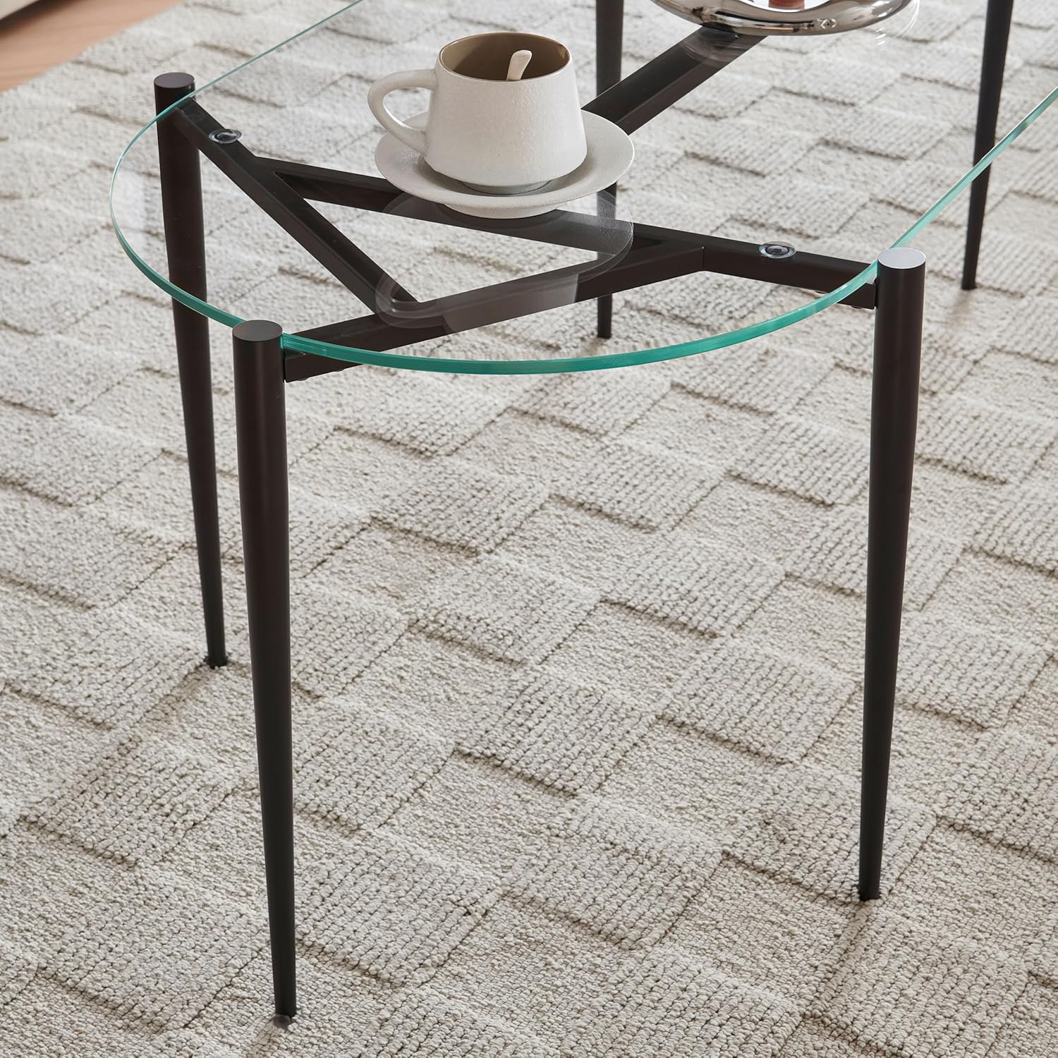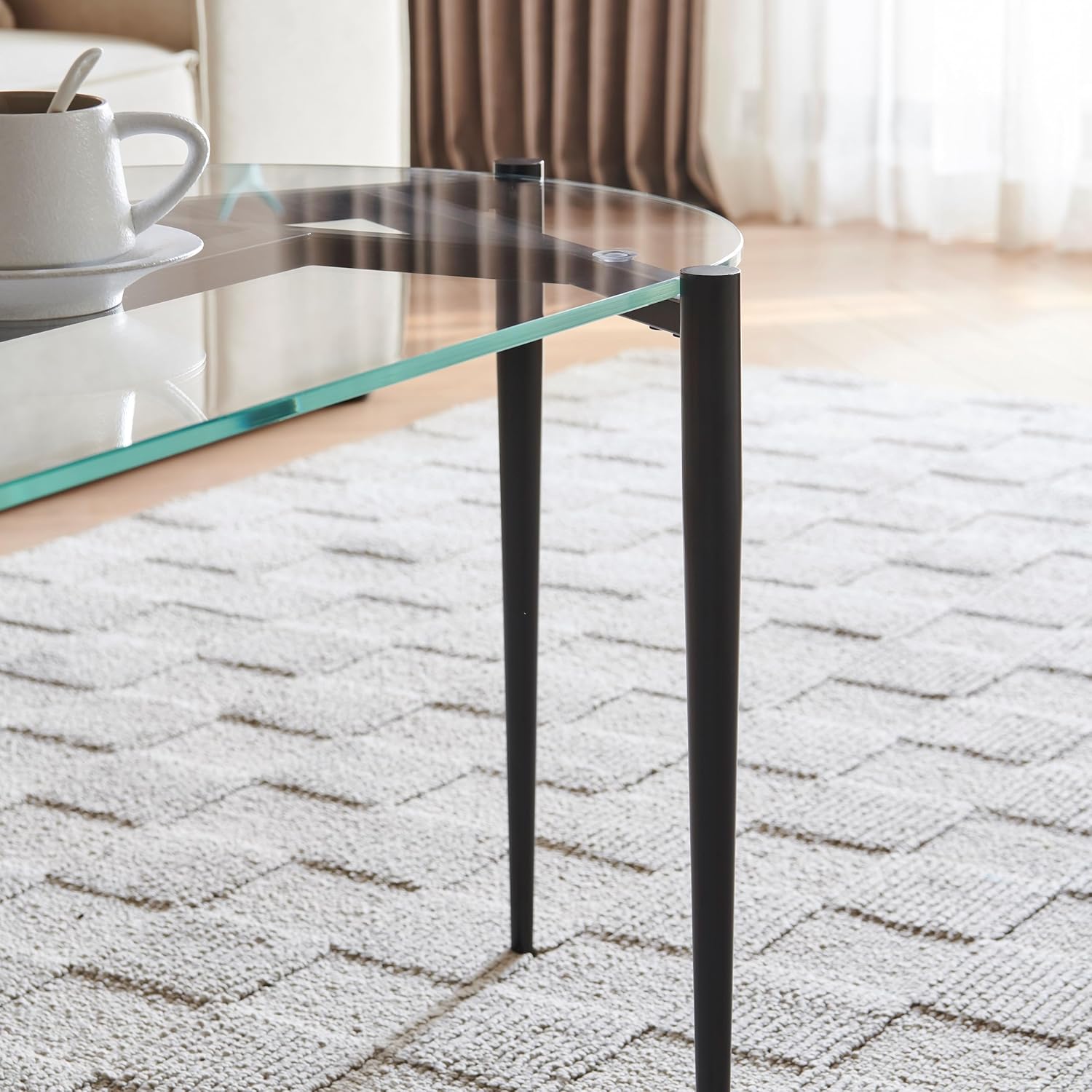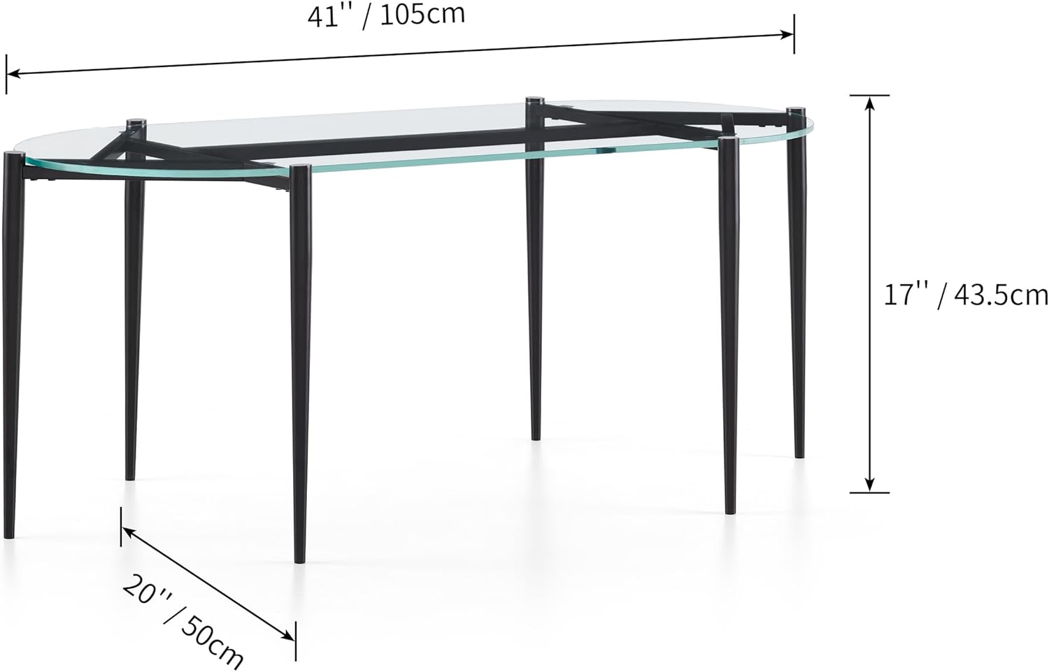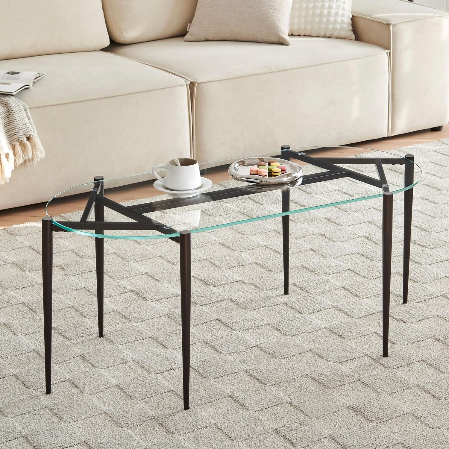 AGV LIGHTING 202311 Glass Coffee Table, Modern Design for Living Space, L40 x W20 x H17, Clear Glass Top & Matte Black Finish Metal Frmae