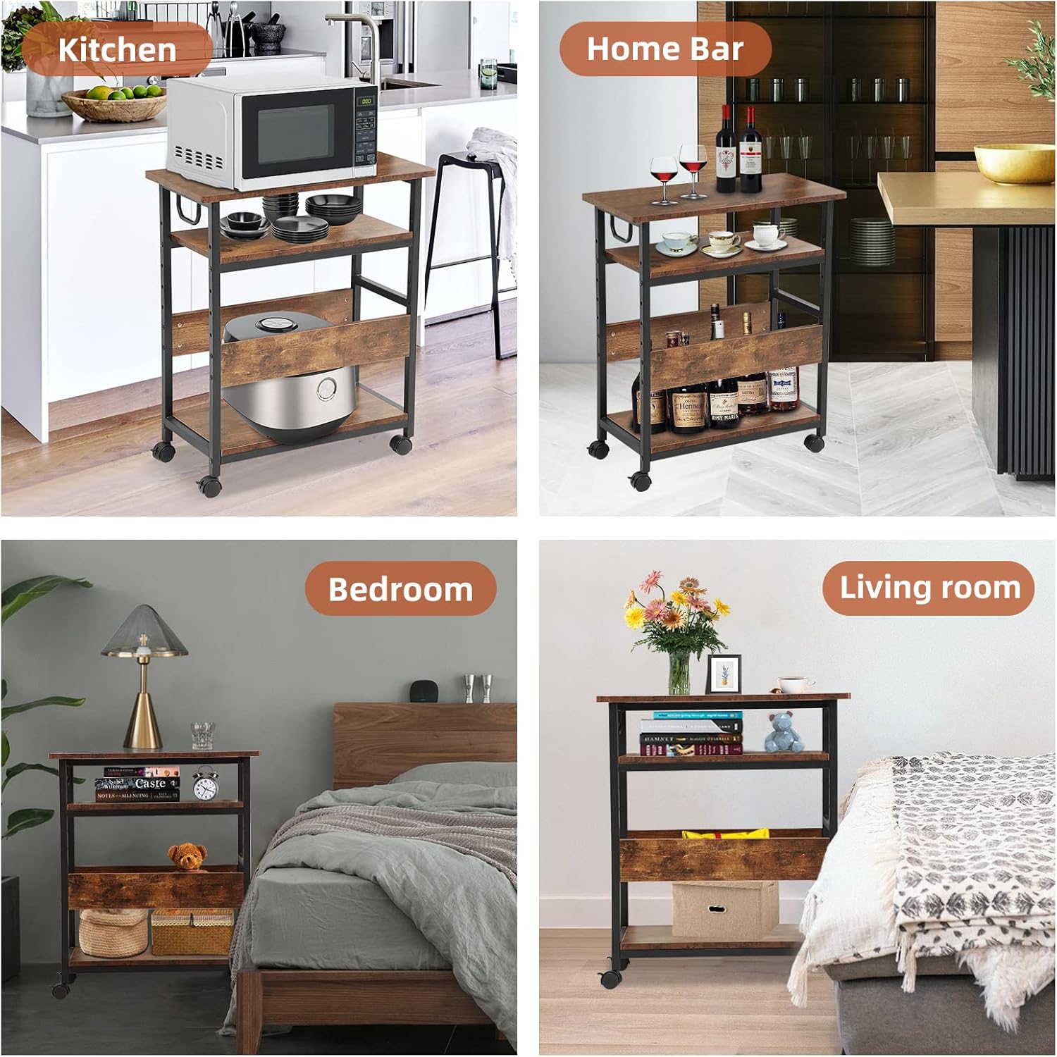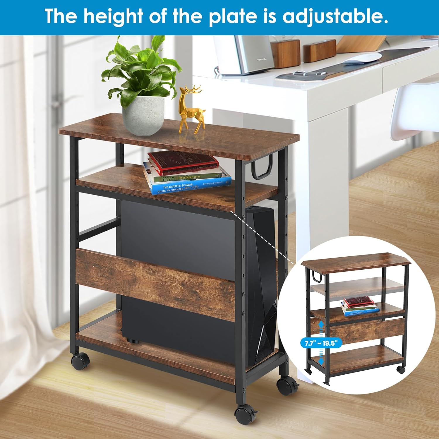 3 Tier Computer Tower Stand Large, 23.6" L x 11.8" W x 27.6" H, Height Adjustable PC Tower Stand, Mobile Printer Stand with Lockable Caster Wheels(Suitable for Tower Smaller Than 19.7" Lx9 Wx18.8 H)