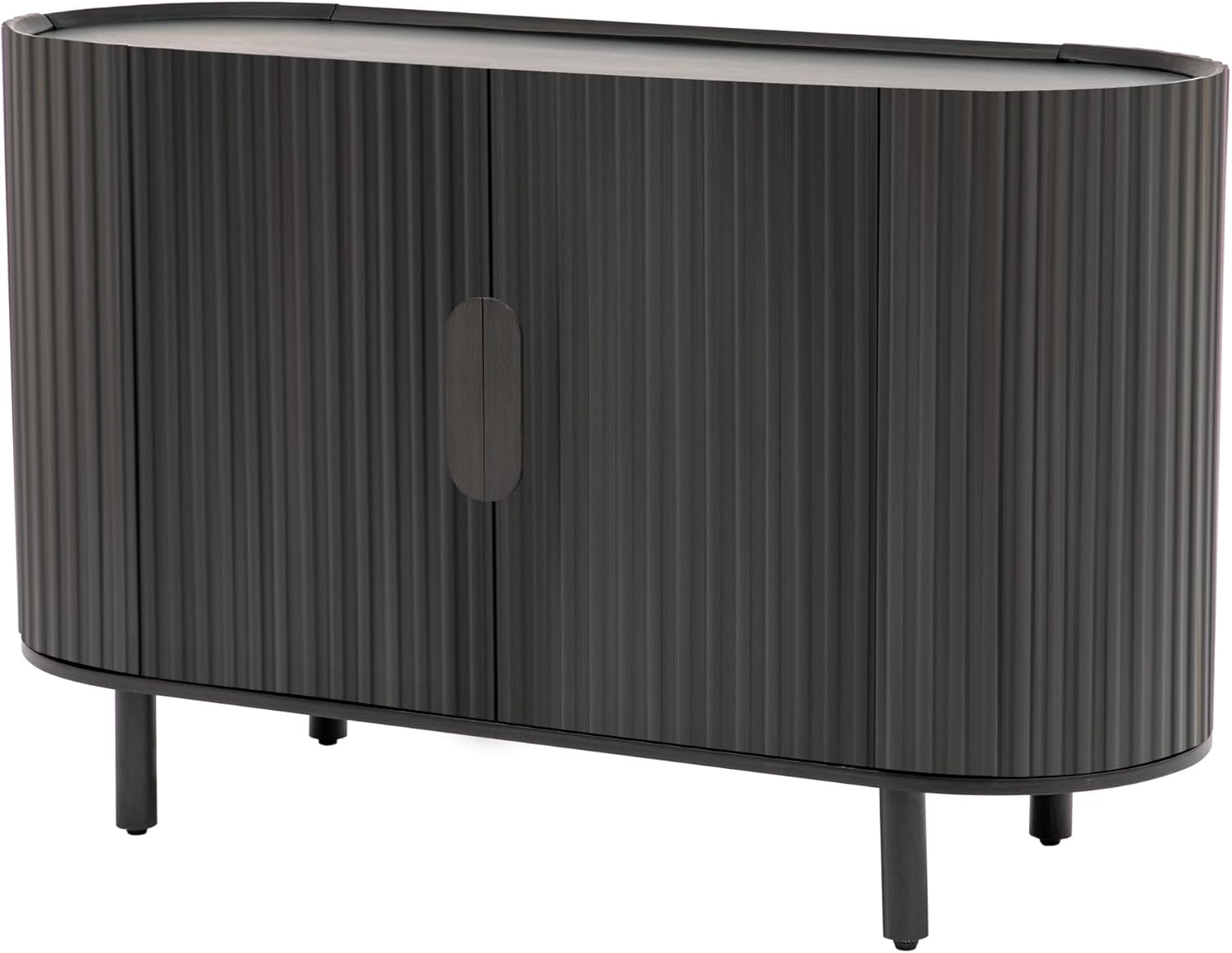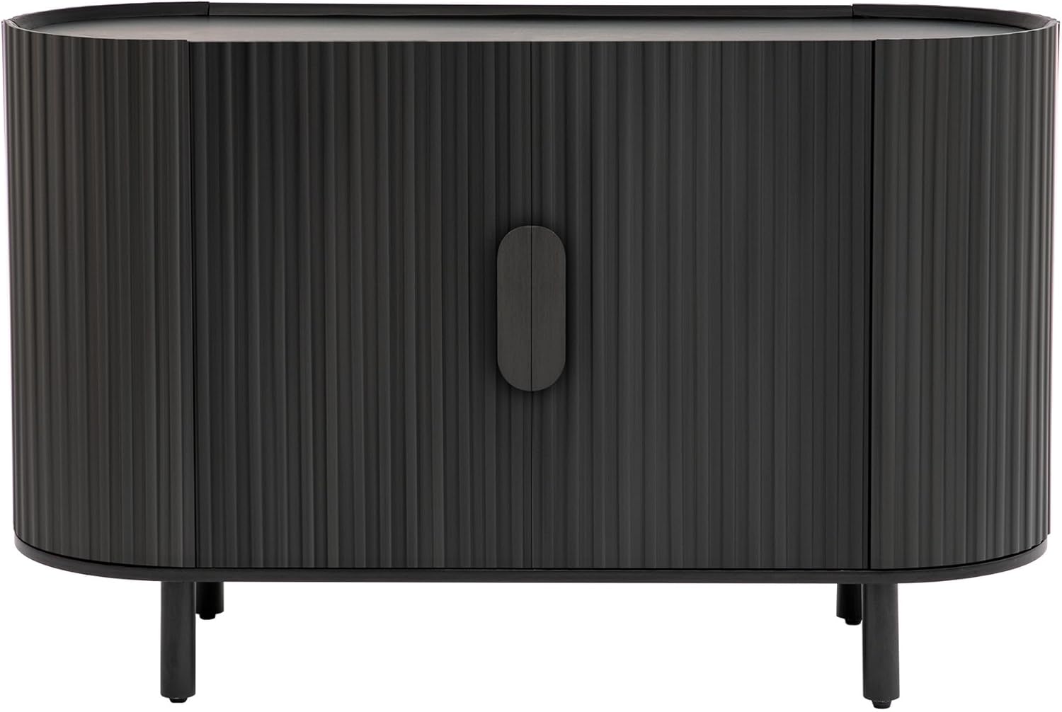 Curved Design Light Luxury Sideboard with Adjustable Shelves Brown Modern Contemporary MDF Wood Finish Shelving
