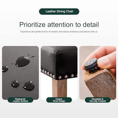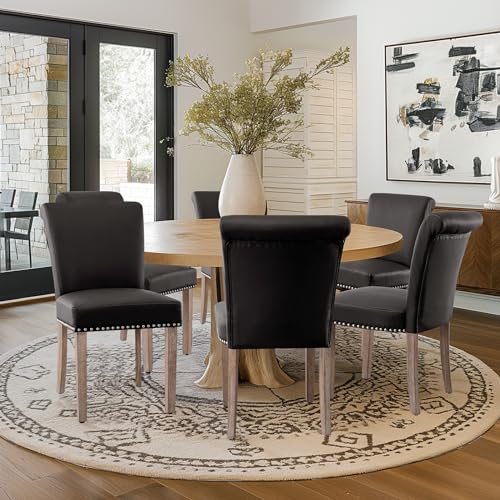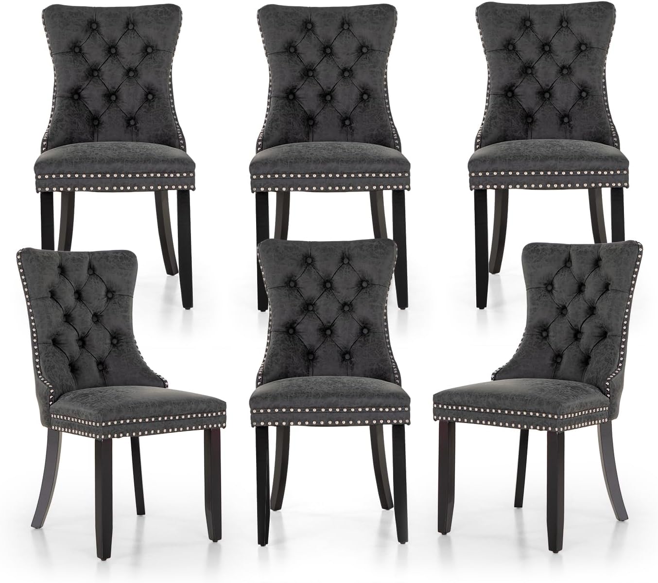ALPHA HOME Faux Leather Dining Chairs Set of 6, Upholstered Chairs for Kitchen & Dining Room, Black