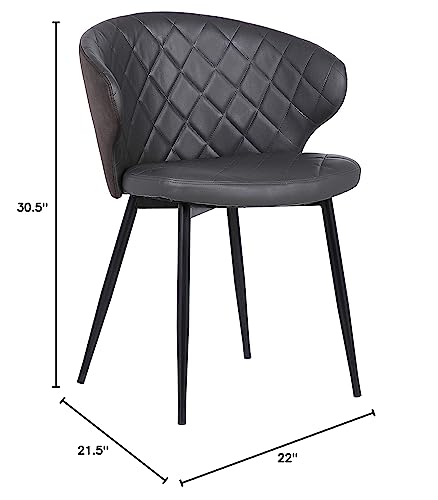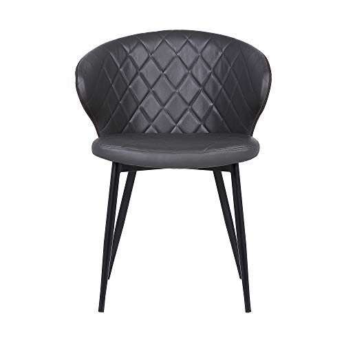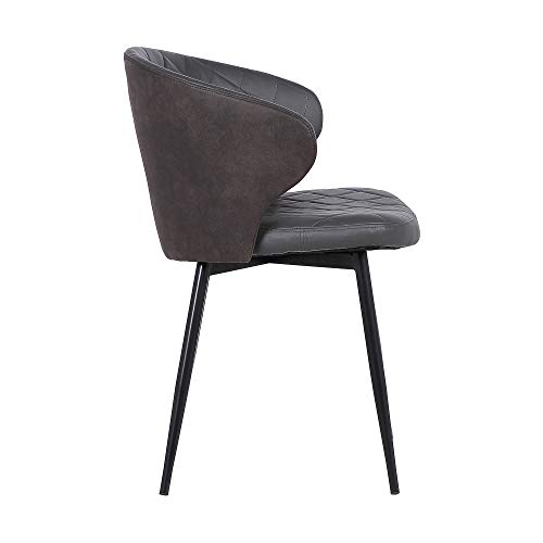 Armen Living Ava Contemporary Faux Leather Dining Room Kitchen Accent Chair, 30.5 Inch Height, Grey, Black