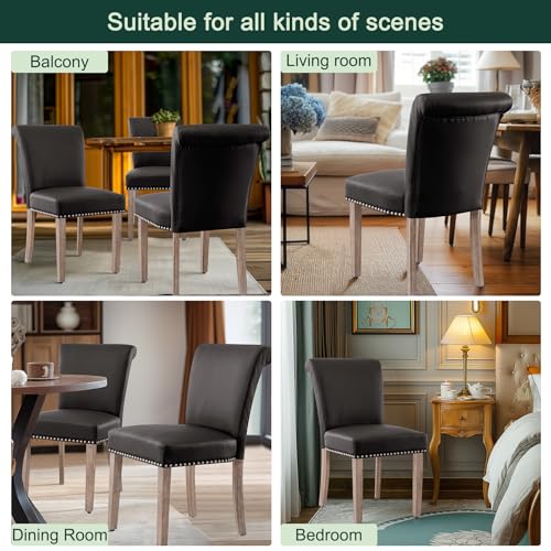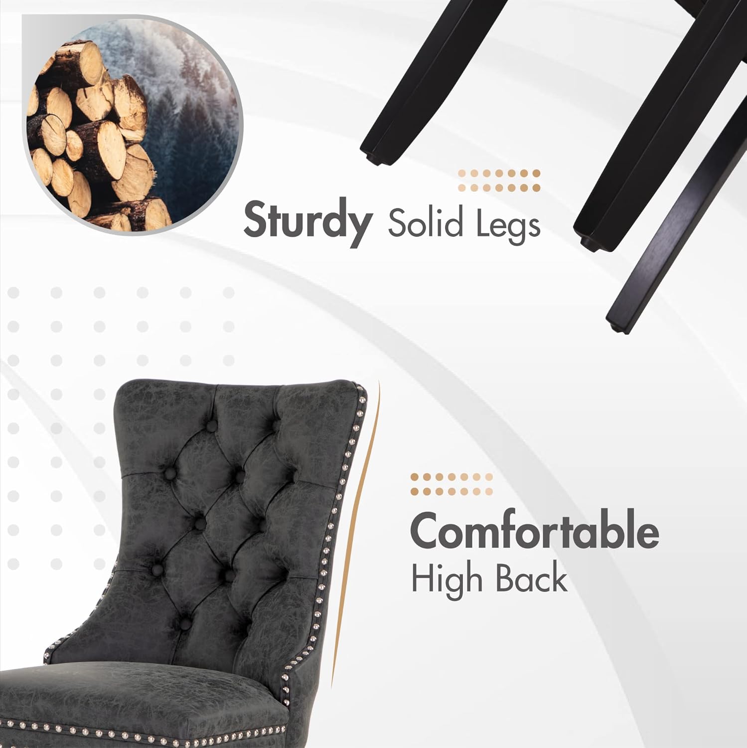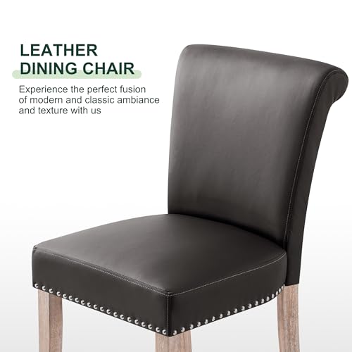 CHUN YI Faux Leather Dining Chairs Set of 2, Upholstered Dining Room Chair with Wood Legs, Mid Century Accent Dining Chairs with High Back for Living Room, Style2-Grey