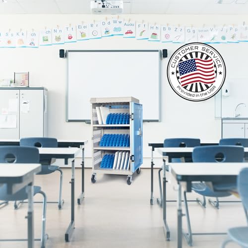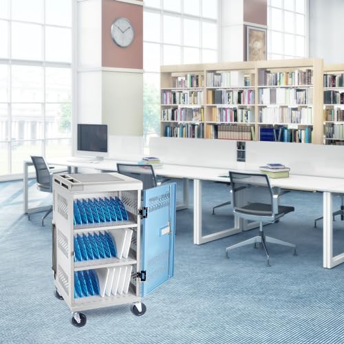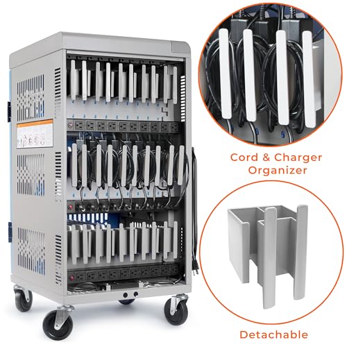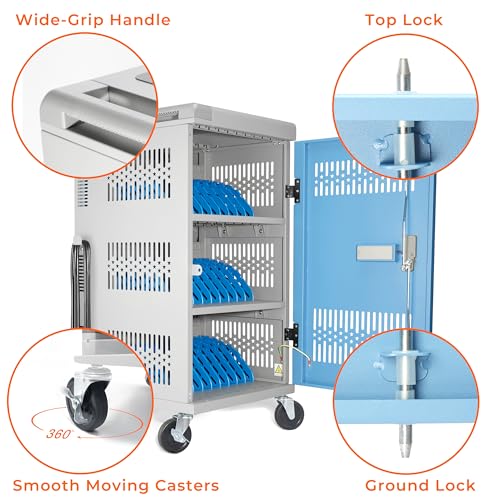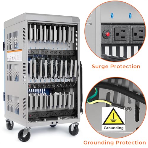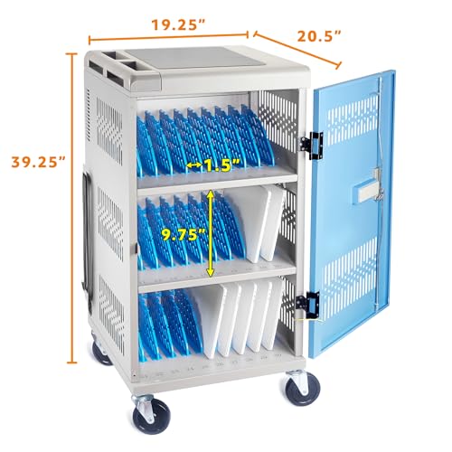 Fully Assembled 30 Bay Mobile Charging and Storage Cart for iPad,Chromebook and Laptop Computer with Keypad Lock,Up to 14-inch Screen Size,Surge Protection,Front & Back Access Locking Cabinet