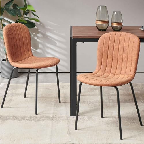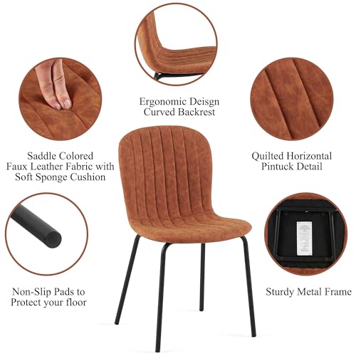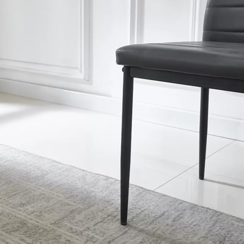 NORDICANA Faux Leather Dining Chairs PU Tufted Kitchen Chairs Set of 4, Dark Grey