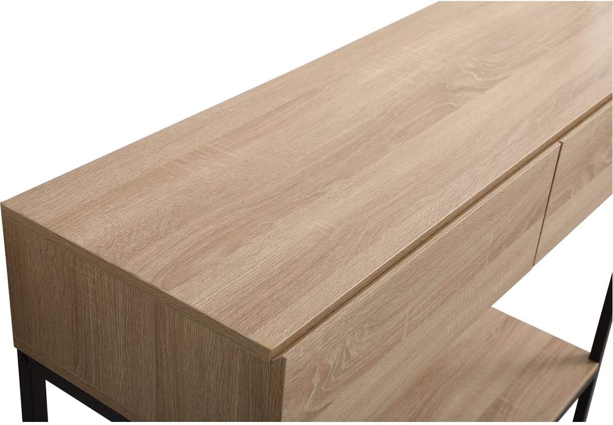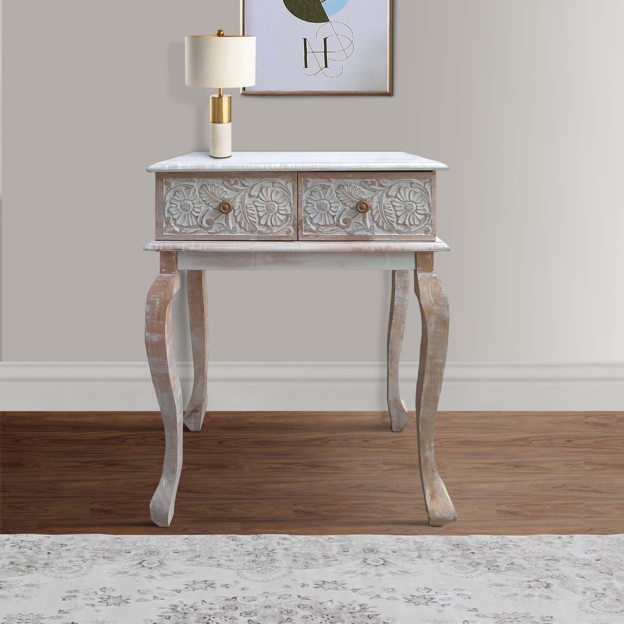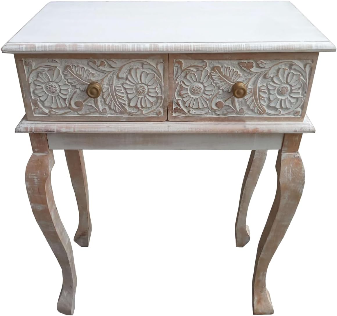 2 Drawer Mango Wood Console Table with Floral Carved Front, Brown and White