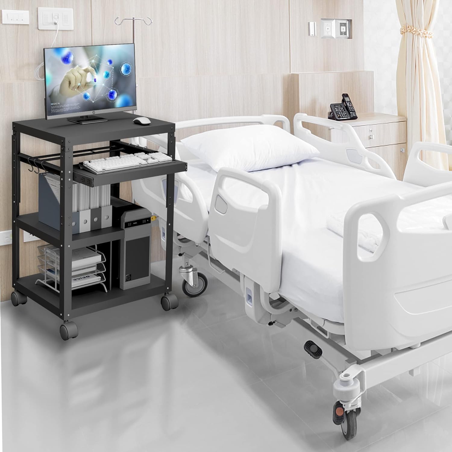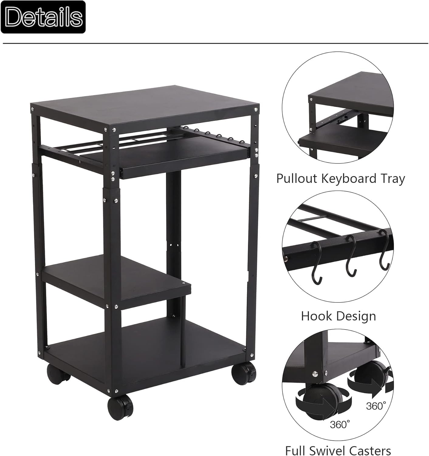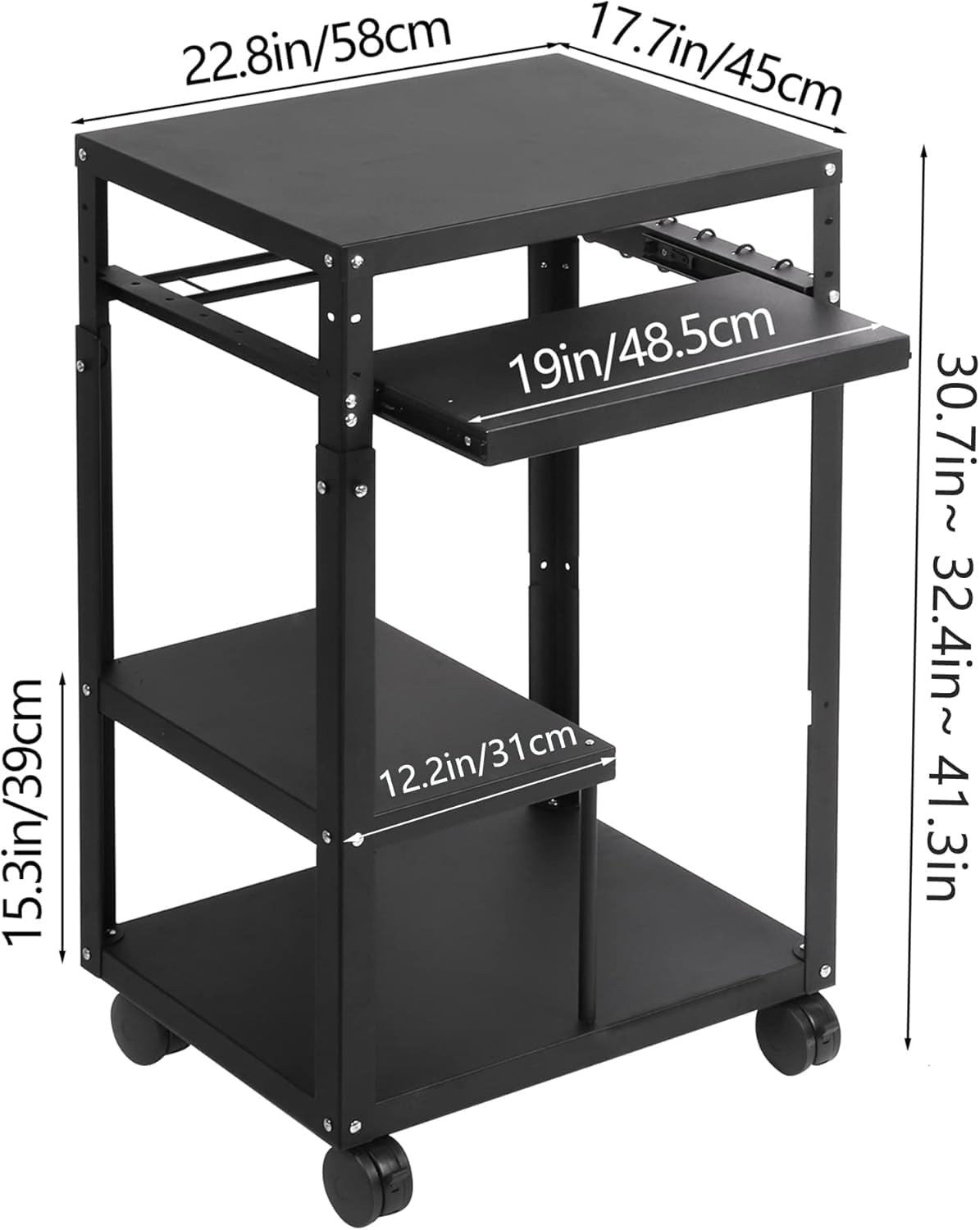 AV Cart with Wheels, Metal Rolling Media Cart & Stands with Keyboard Tray and Storage for Projector, Adjustable Height Presentation Cart Table for School Classroom and Office, Line Leader AV Carts
