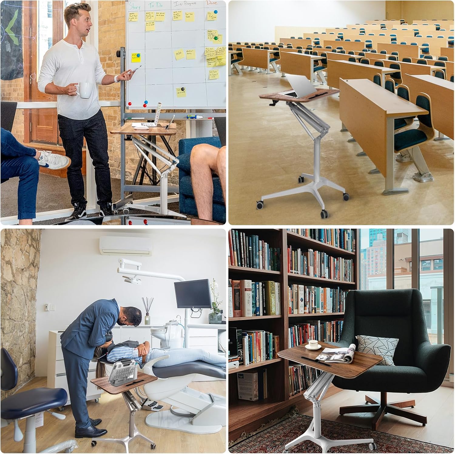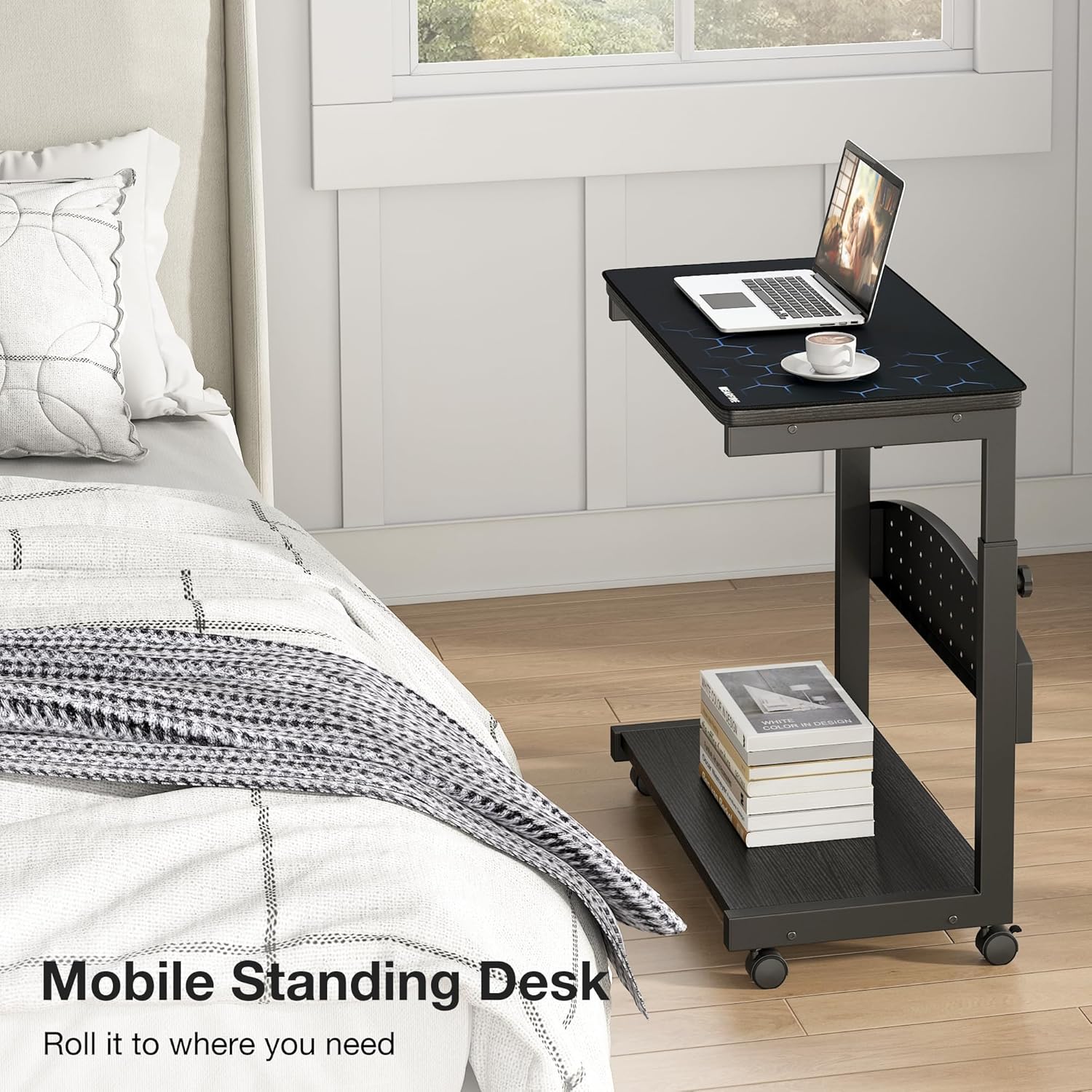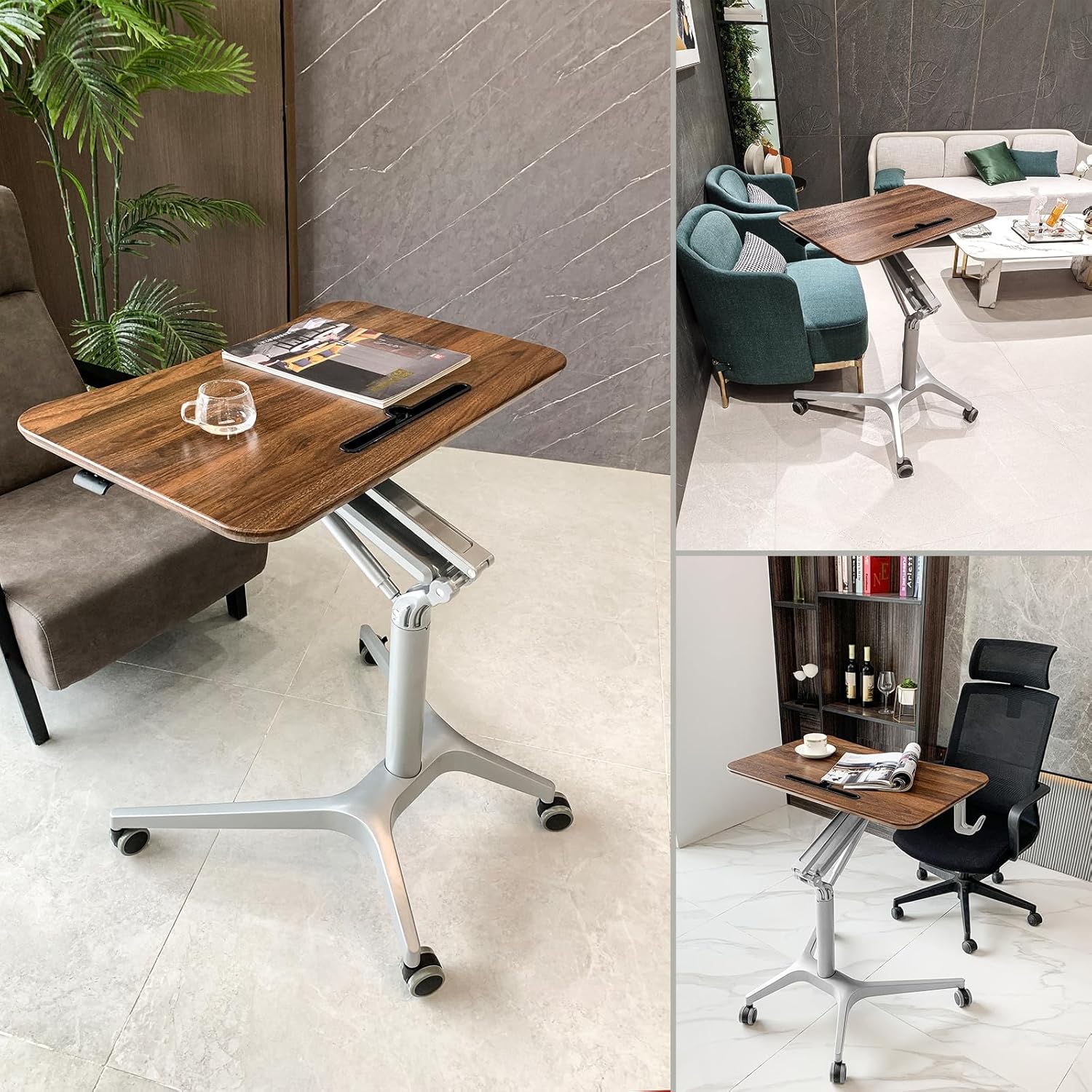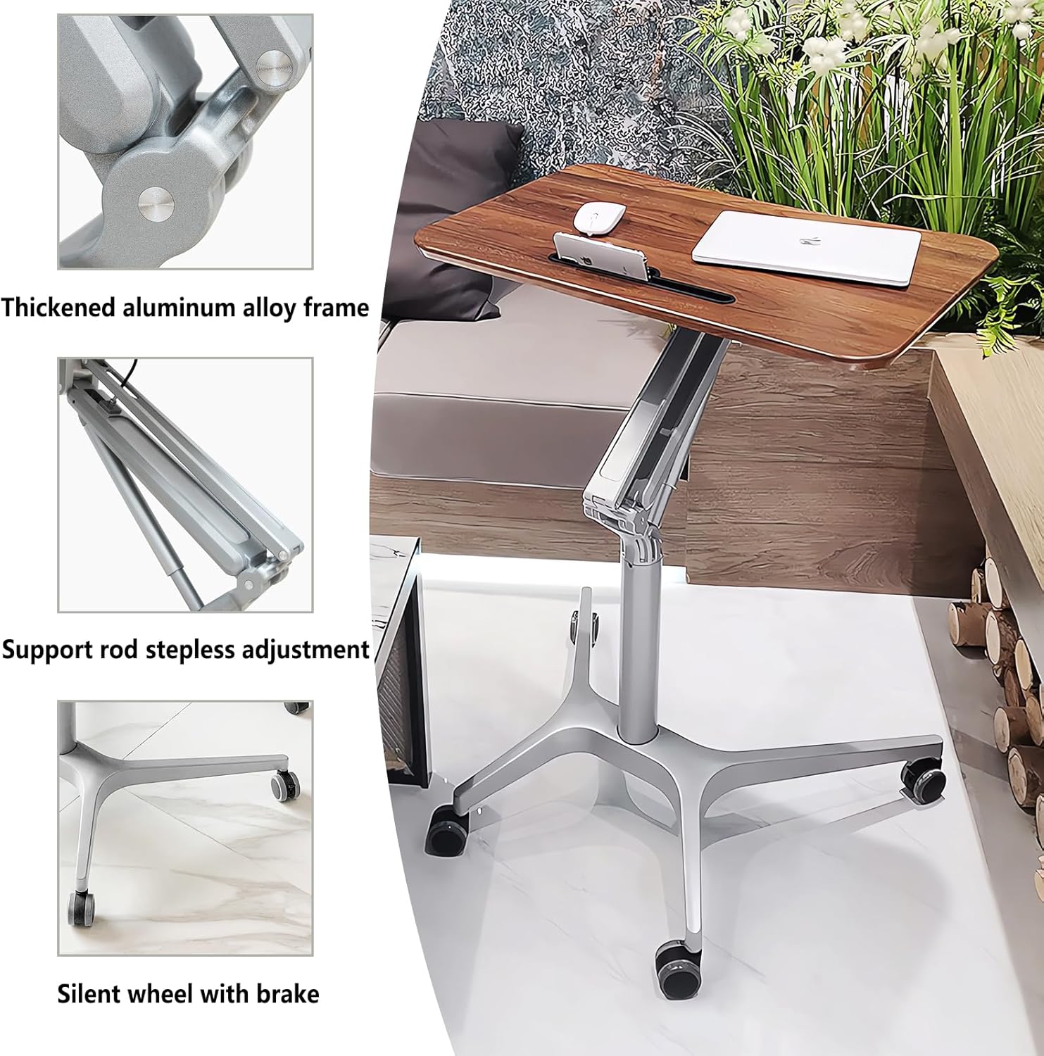 Standing Desk Adjustable Height Small Rolling Laptop Stand Desk,41.9in Standing or Sitting Computer Workstation with Wheels for Home Office Bedside Laptop Cart
