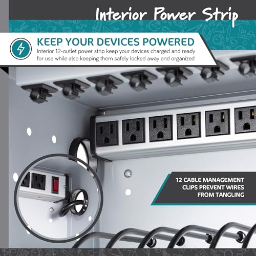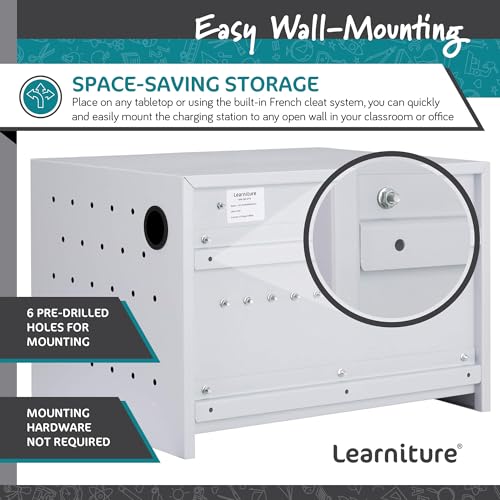Learniture Structure Series 12-Device Charging Station for Laptops and Tablets, Wall-Mount Lockable Charging Cabinet for 12 Tablets/Chromebooks, Black