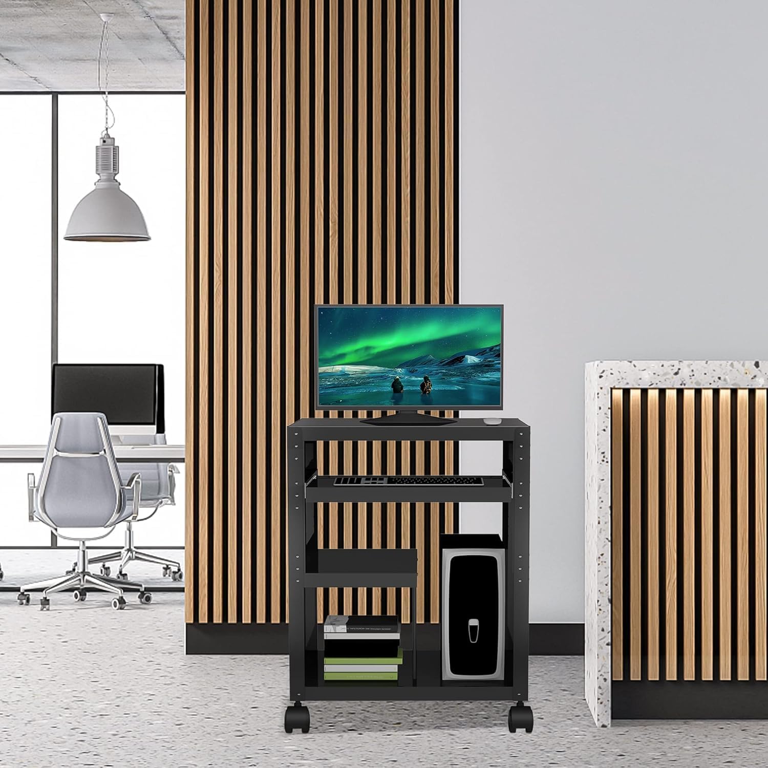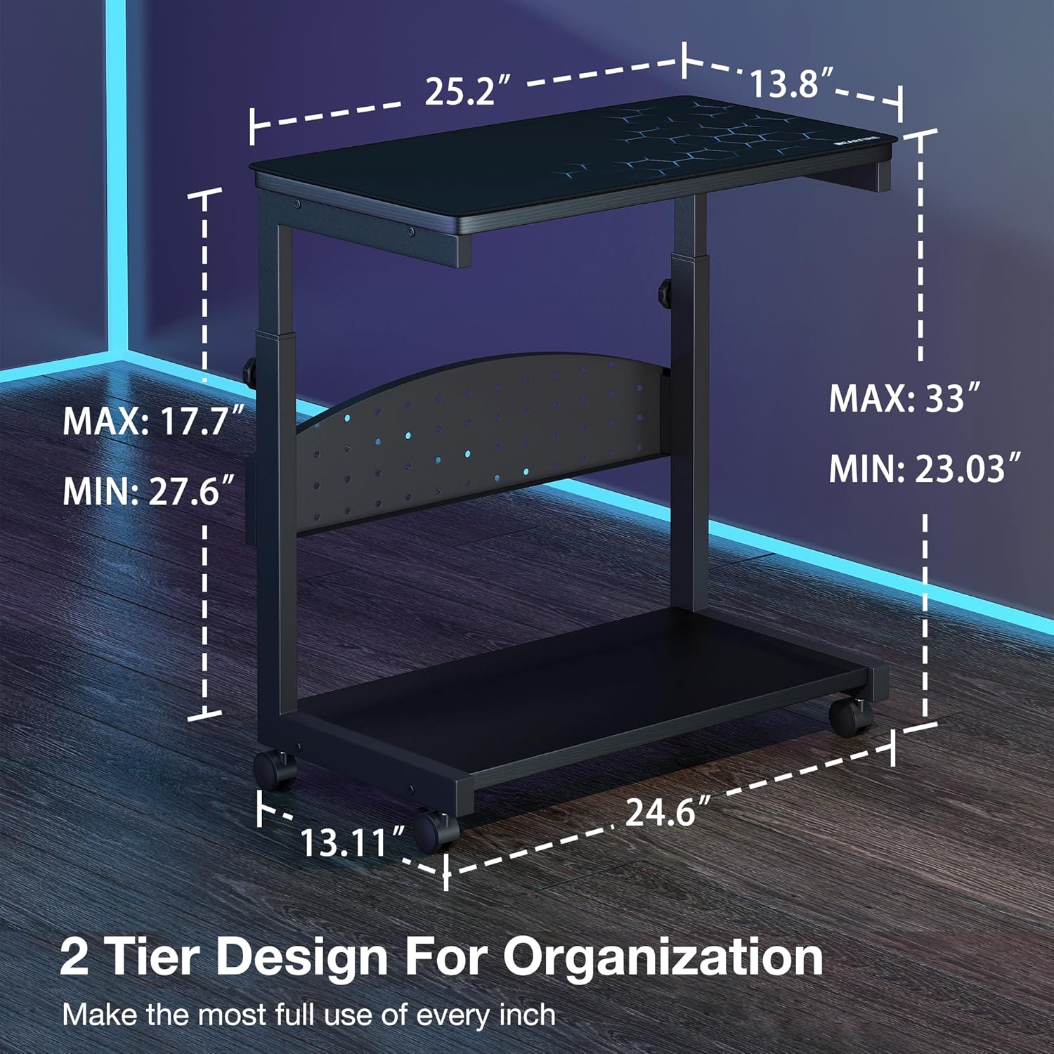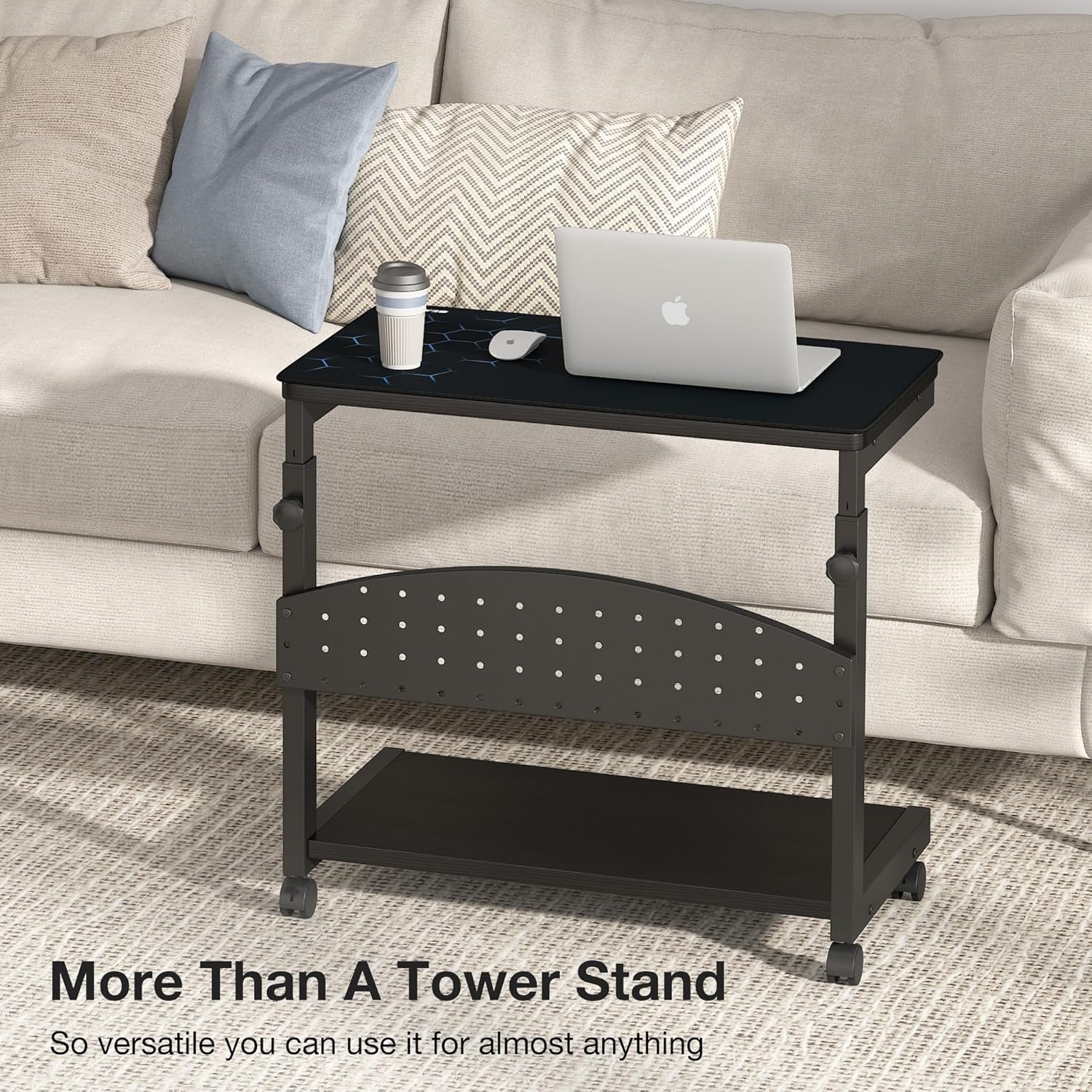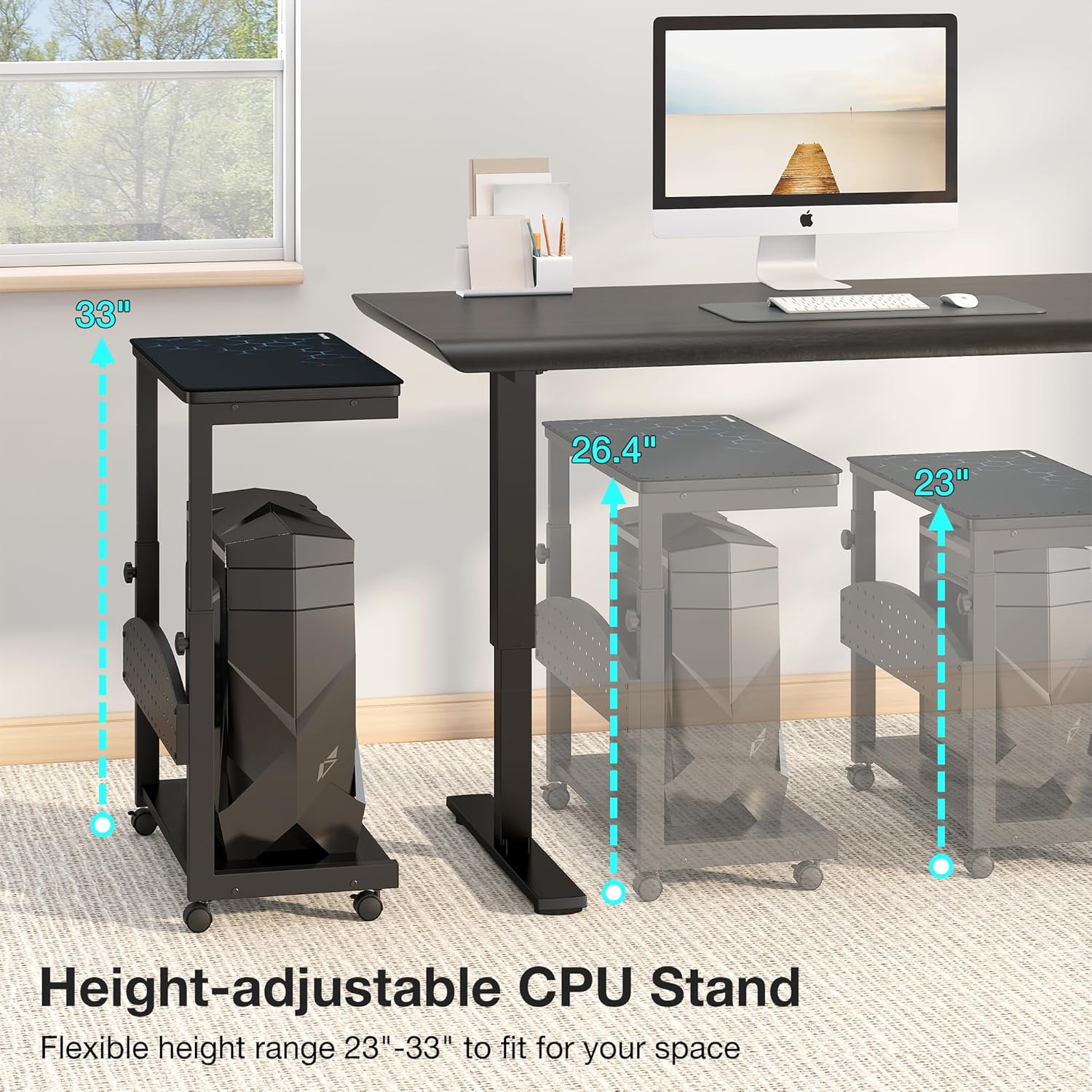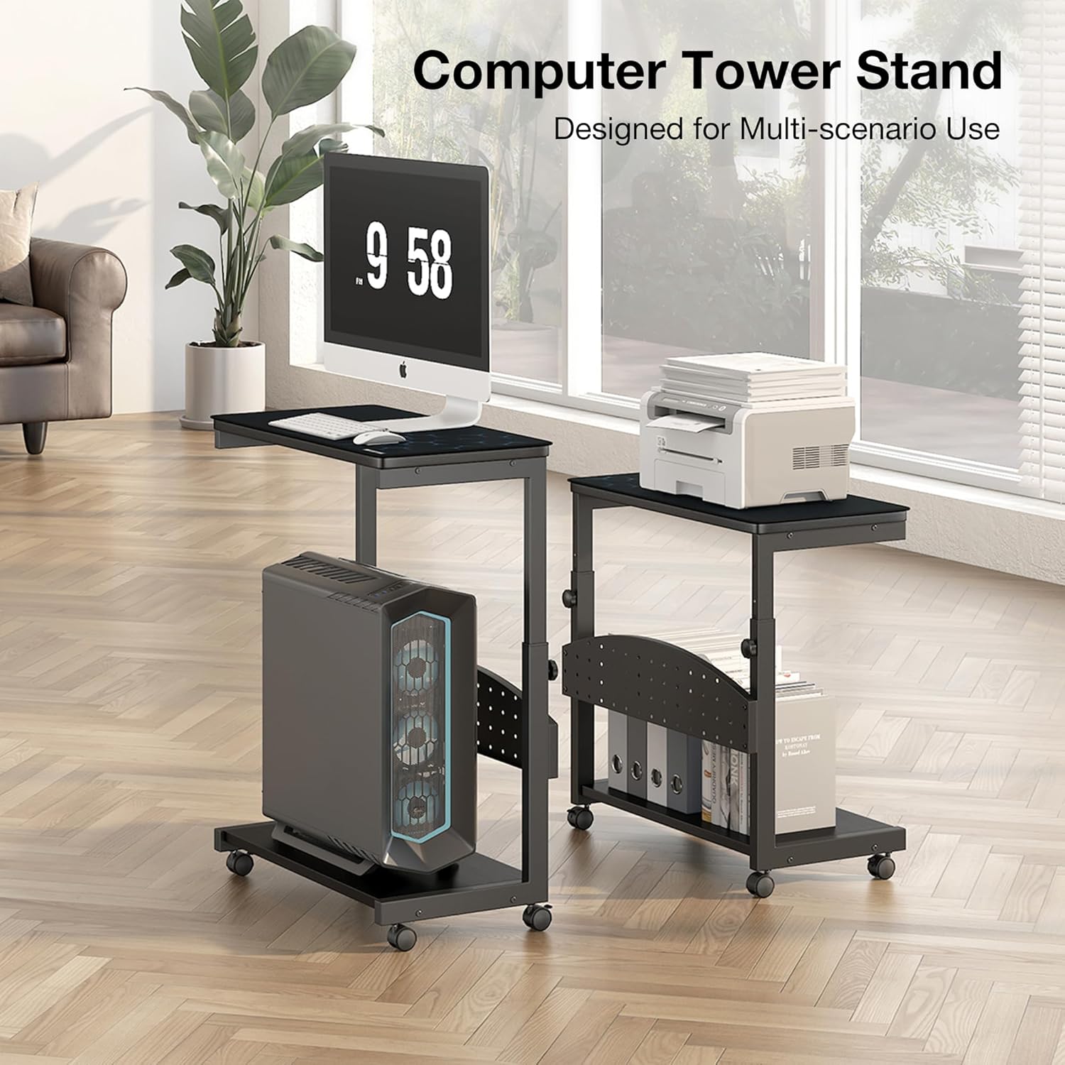 Height Adjustable Computer Tower Stand, 2-Tier PC Stand CPU Cart Under Desk Mobile Laptop Desk Side Table Gaming Case Holder w/Rolling Wheels