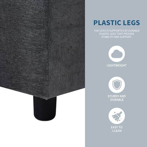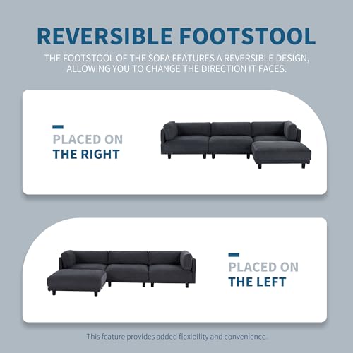 P PURLOVE Sectional Sofa, L-Shape Upholstered Couch with Ottoman, Upholstery Convertible Sectional Sofa with Reversible Chaise, 3 Seat Sofa Couch for Living Room (Gray)