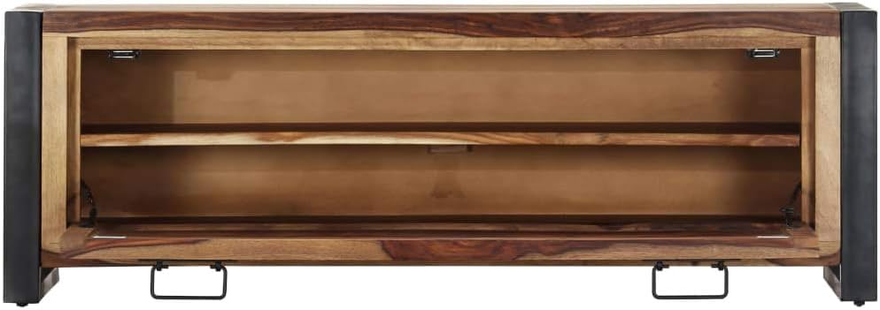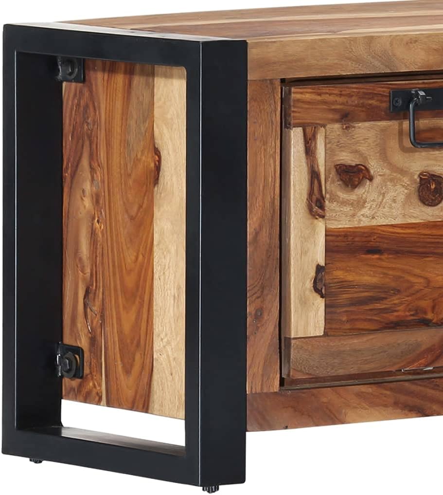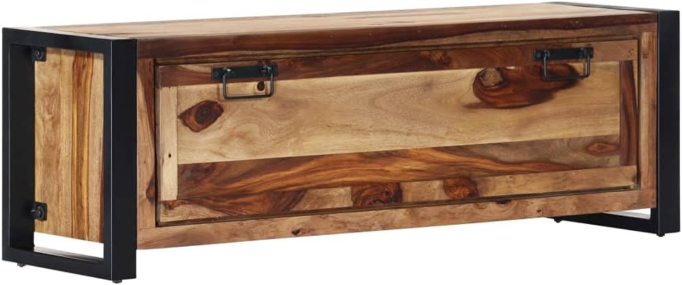 vidaXL Solid Sheesham Wood Shoe Cabinet with Steel Legs - Spacious Shoe Rack with 2 Shelves and Door - Durable and Sturdy Shoe Storage Furniture for Organized Spaces.
