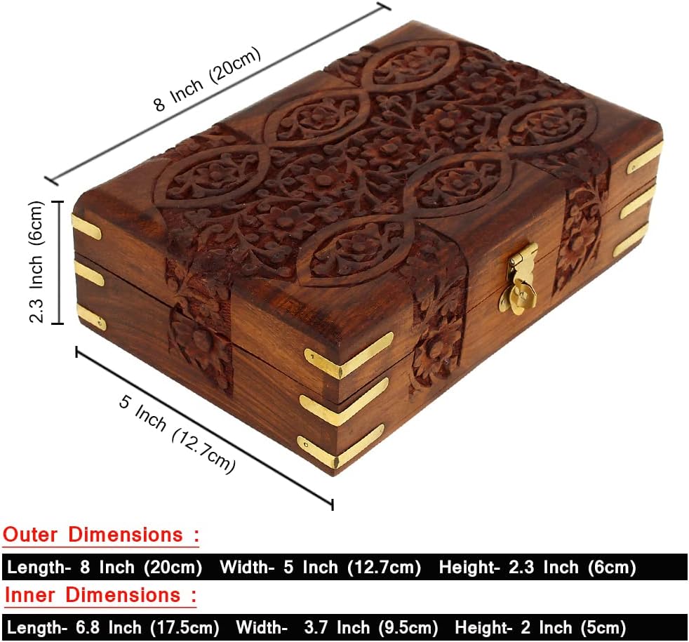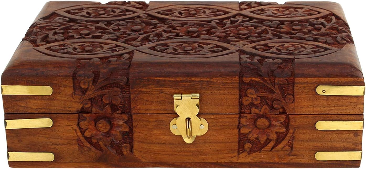 Ajuny Hand Carved Wooden Decorative Floral Carvings Multipurpose Storage Organiser Keepsake Jewellery Box 20x12.5x6.5 CM