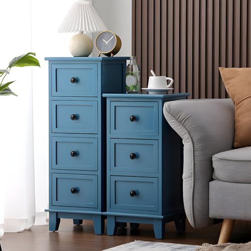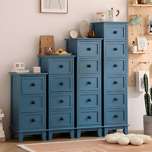 LITFAD Nightstand Contemporary Wood Lingerie Chest with Drawers Multifunctional Storage Locker Multi-Layer Living Room Cabinet - Blue 12" L x 12" W x 38" H