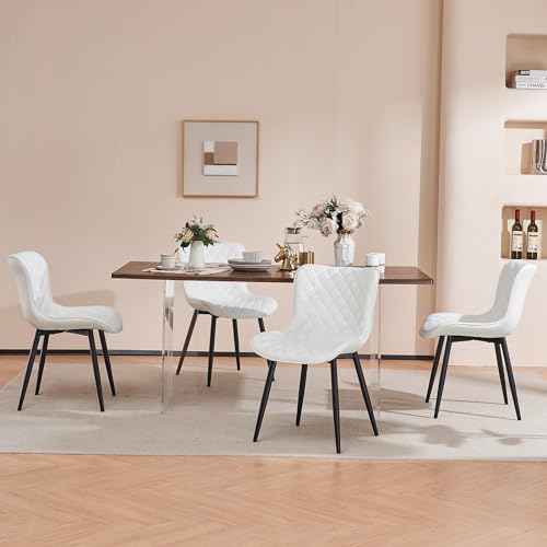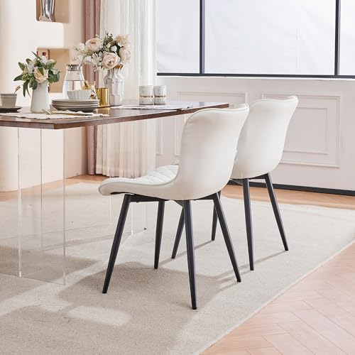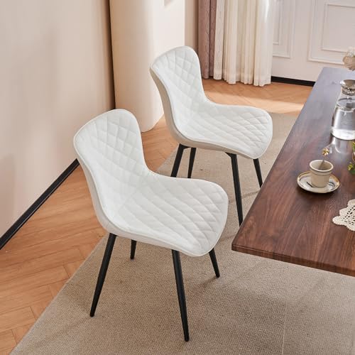 Kidol & Shellder Upholstered Dining Chairs Set of 2 Kitchen Dining Room Chairs Mid Century Modern Kitchen Chairs Dining Table Chairs Faux Leather Side Chair for Waiting Living Room Bedroom(White)