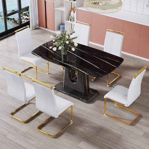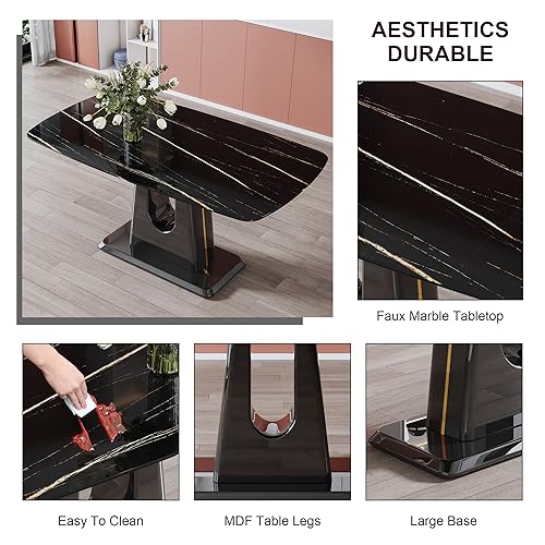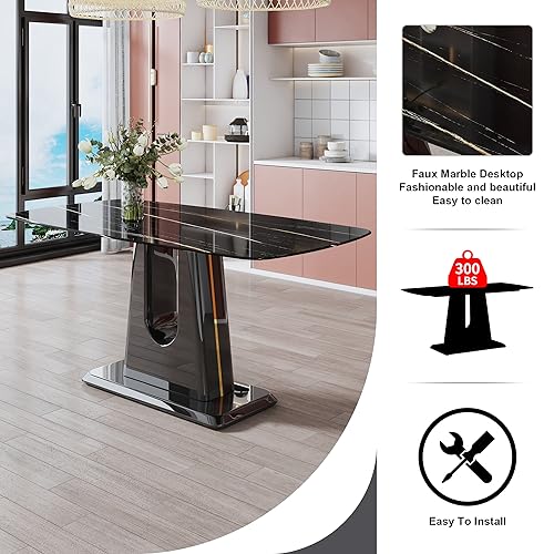 63'' Morden Imitation Marble Grain Dining Table Rectangular Office Table for Kitchen Dining Room Meeting Room Grey