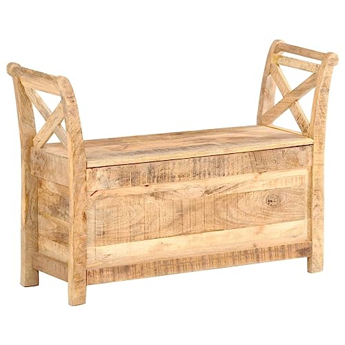 vidaXL Handcrafted Solid Sheesham Wood Bench, Brown - Industrial Style Wooden Seat with Curved Armrests, Storage Box - 40.6"x13"x28.3"