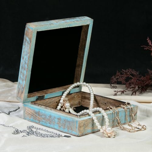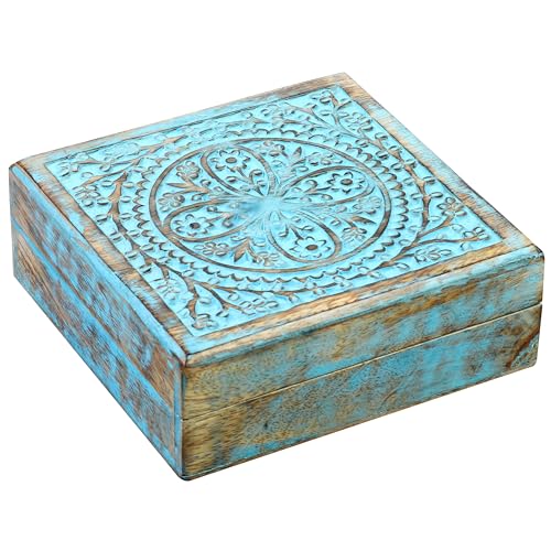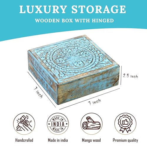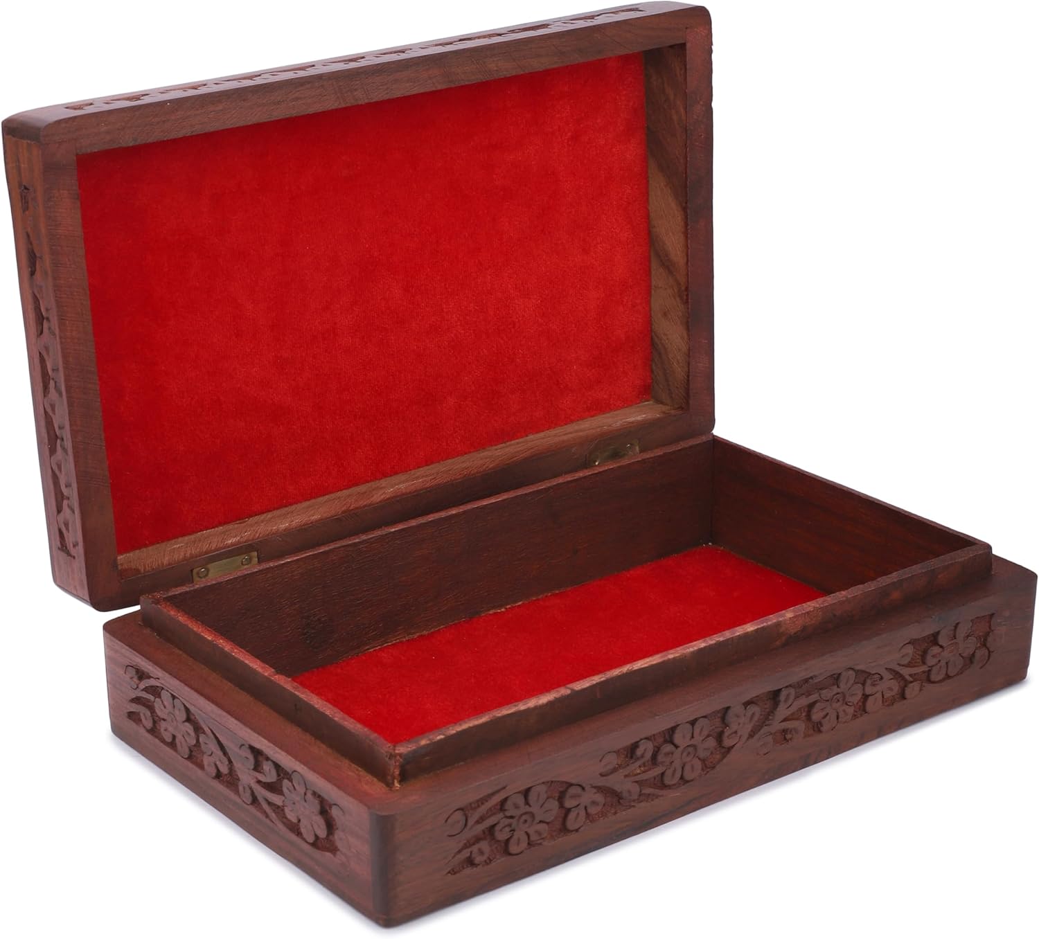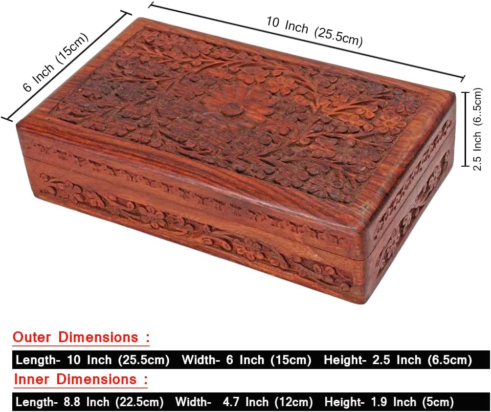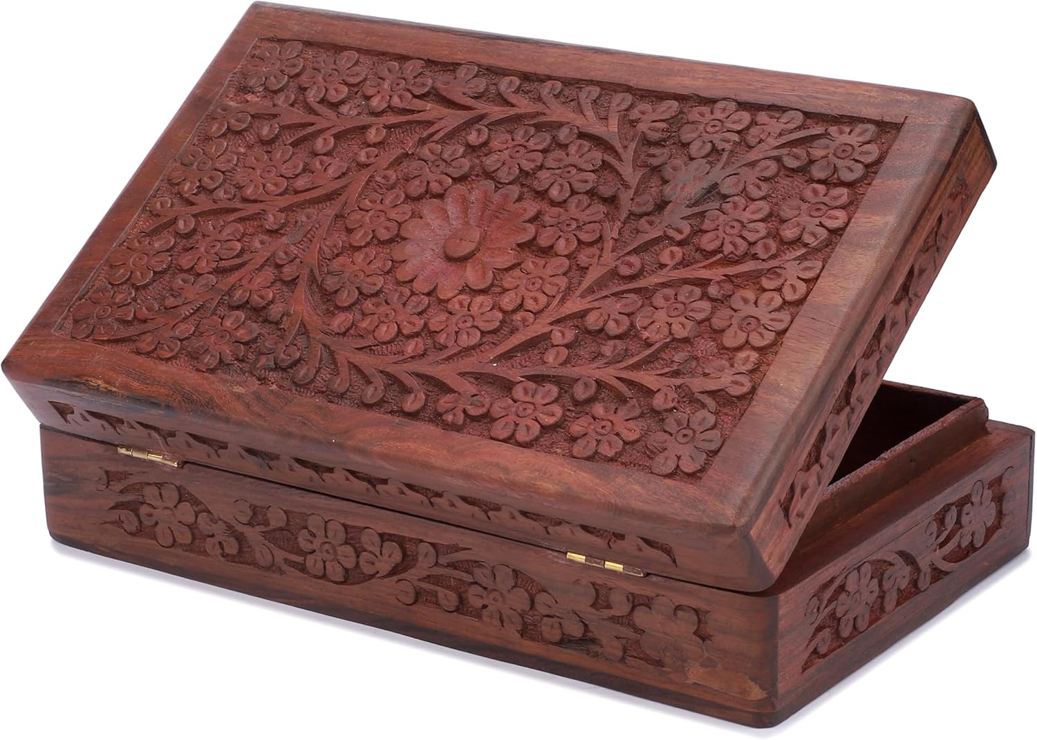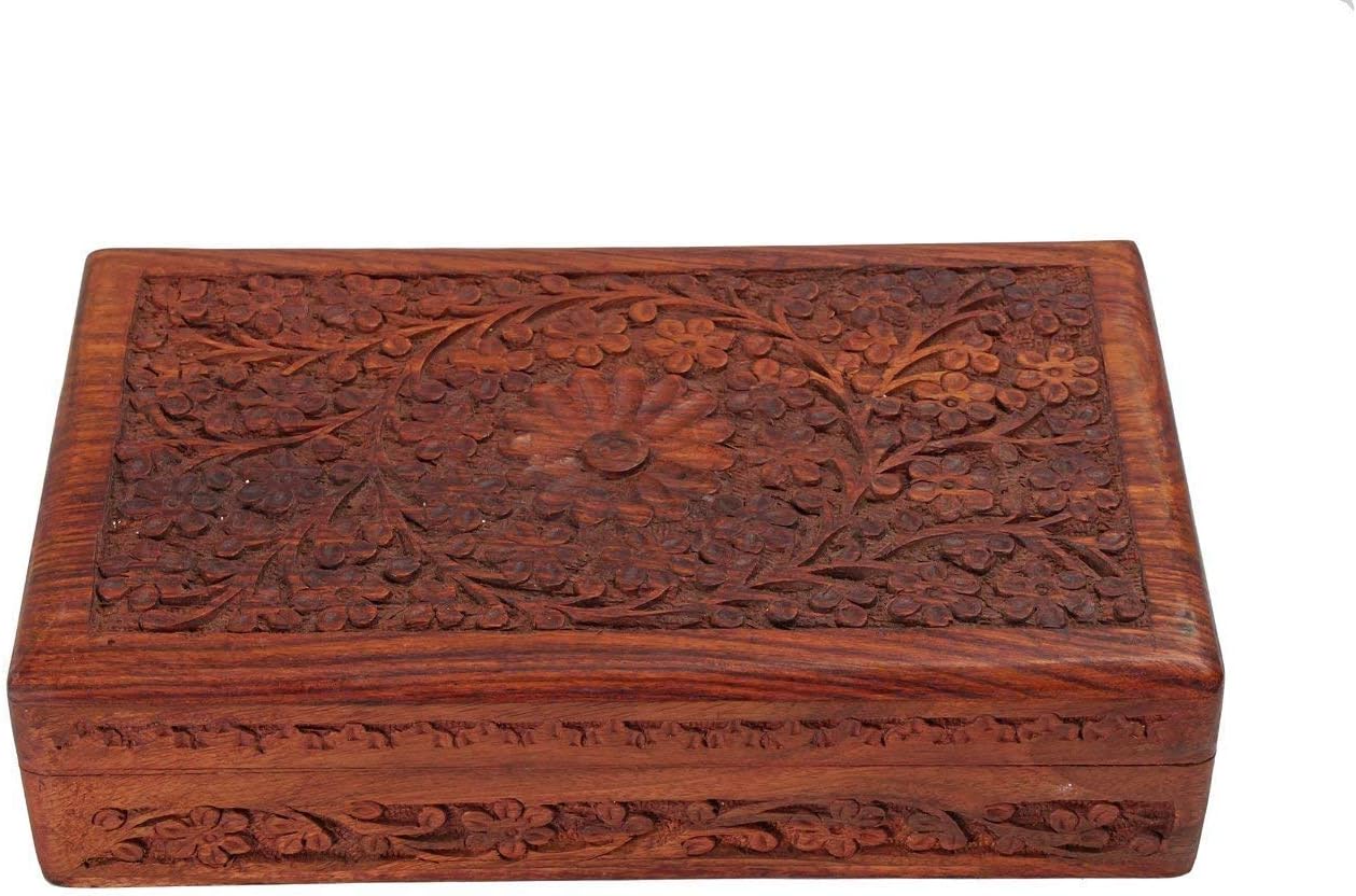 Ajuny Wooden Handcrafted Decorative Antique Wooden Keepsake Jewellery Organiser Handmade Multipurpose With Intricate Floral Carvings Jewelry Keepsake Storage Box Watch Box