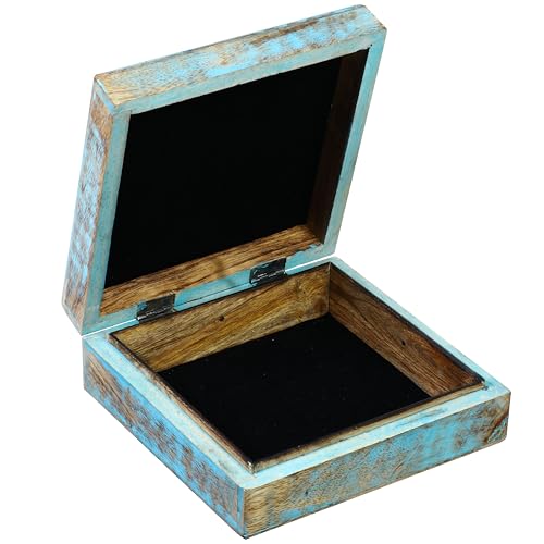 Wooden Box - Keepsake Box With Lid- Memory Box For Keepsake - Crystal kit Box for Keeping Stones, Engraved Design, Jewelry Box, Trinket Box - Sky Blue