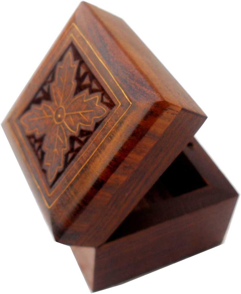 Handcrafted Brass Inlay Sheesham Wood Jewelry Box - Specially for Rings - Size 2"X2"X2" Inch_JB32