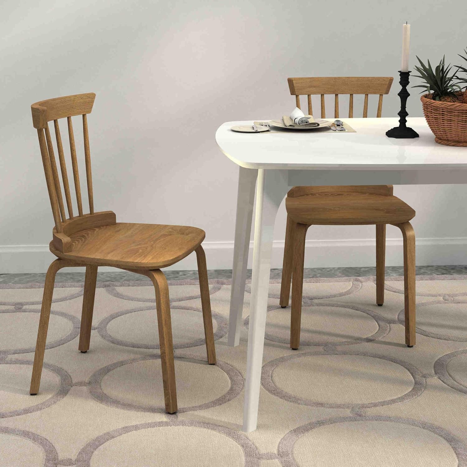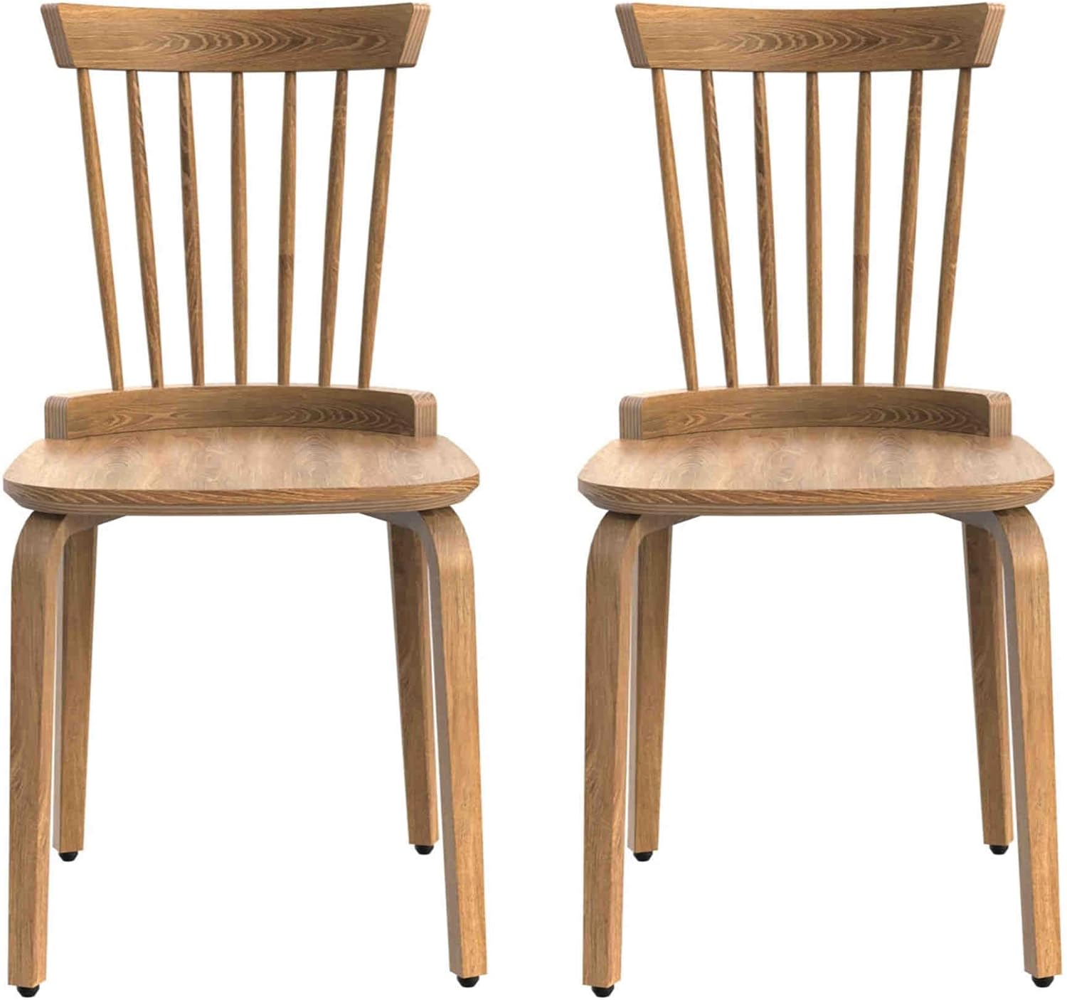 Modern White Oak Windsor Chair Set of 2 Solid Wood Dining Chairs for Kitchen, Dining Room - Elegant and Sturdy Furniture Pieces with Easy Assembly